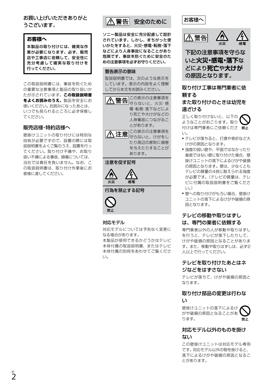 SU-WL450 - テレビ壁掛け金具 SONY - 無料のユーザーマニュアル