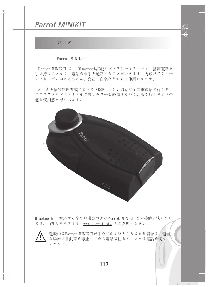 デバイスのマニュアルを無料で見つける MINIKIT PARROT PDF形式.