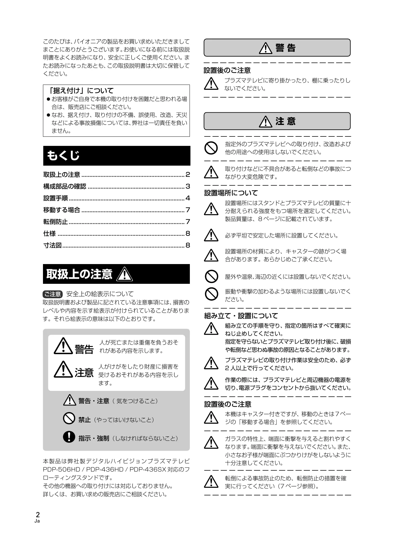 取扱上の注意 ................................................................. 2 取り付けなどに不具合があると転倒などの事故につ