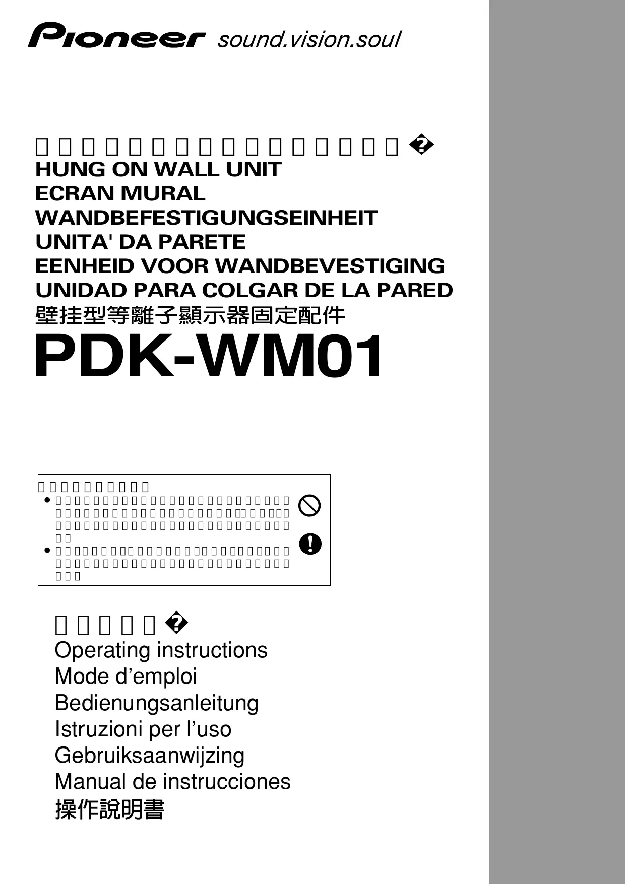HUNG ON WALL UNIT ECRAN MURAL WANDBEFESTIGUNGSEINHEIT UNITA' DA PARETE EENHEID VOOR WANDBEVESTIGING UNIDAD PARA COLGAR DE LA PARED PDK-WM01 「据付工事」について 本機は十分な技術・技能を有する専門業者が据え付けを 行うことを前提に販売されているものです。据え付け・取 り付けは必ず工事専門業者または販売店にご依頼くださ い。 なお、据え付け、取り付けの不備、誤使用、改造、天災な どによる事故損傷については、弊社は一切責任を負いま せん。
