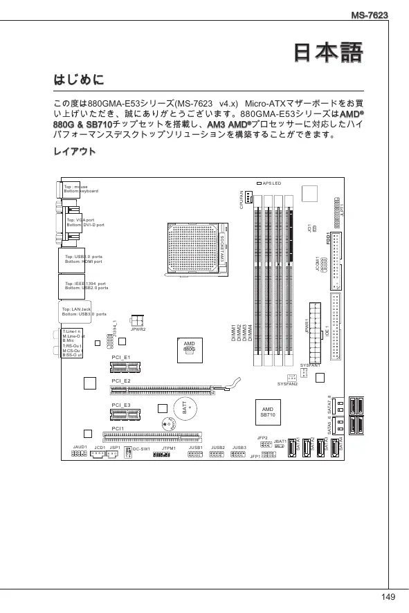 この度は880GMA-E53シリーズ(MS-7623 v4.x) Micro-ATXマザーボードをお買 い上げいただき、誠にありがとうございます。880GMA-E53シリーズはAMD ®