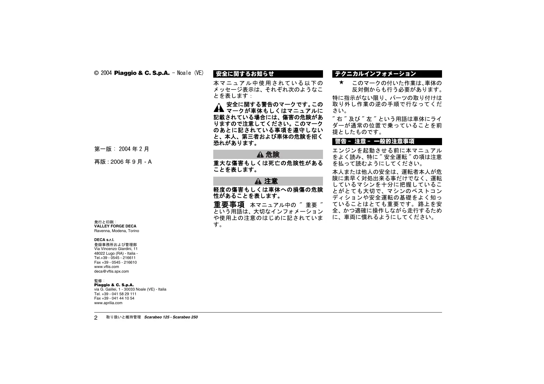 使用説明書 SCARABEO 125 APRILIA
