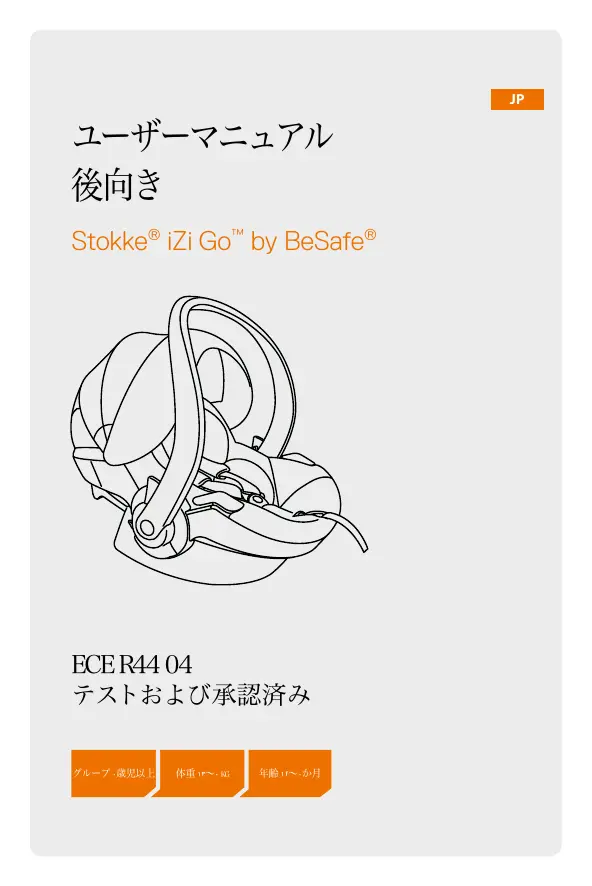 •Stokke®iZi Go™by BeSafe®は、幼児(0歳以上)および後ろ向きで0 〜13KGの体重の使用が承認されています。 •お子様の体重が 13KG を越える場合や、お子様の肩の高さがショル ダーストラップの最高位置よりも上になる場合には、グループ1シート をお使いください。
