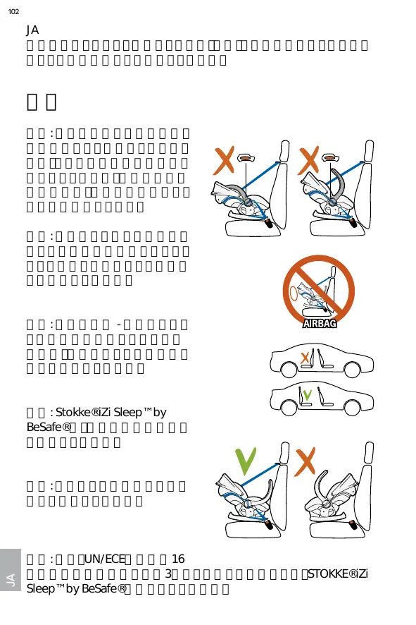 AVERTISSEMENT: installer UNIQUEMENT le Stokke® iZi Sleep™ de BeSafe® à l’aide d’une ceinture 3 points approuvée par la réglementation CEE/NU n° 16 ou par d’autres normes équivalentes.