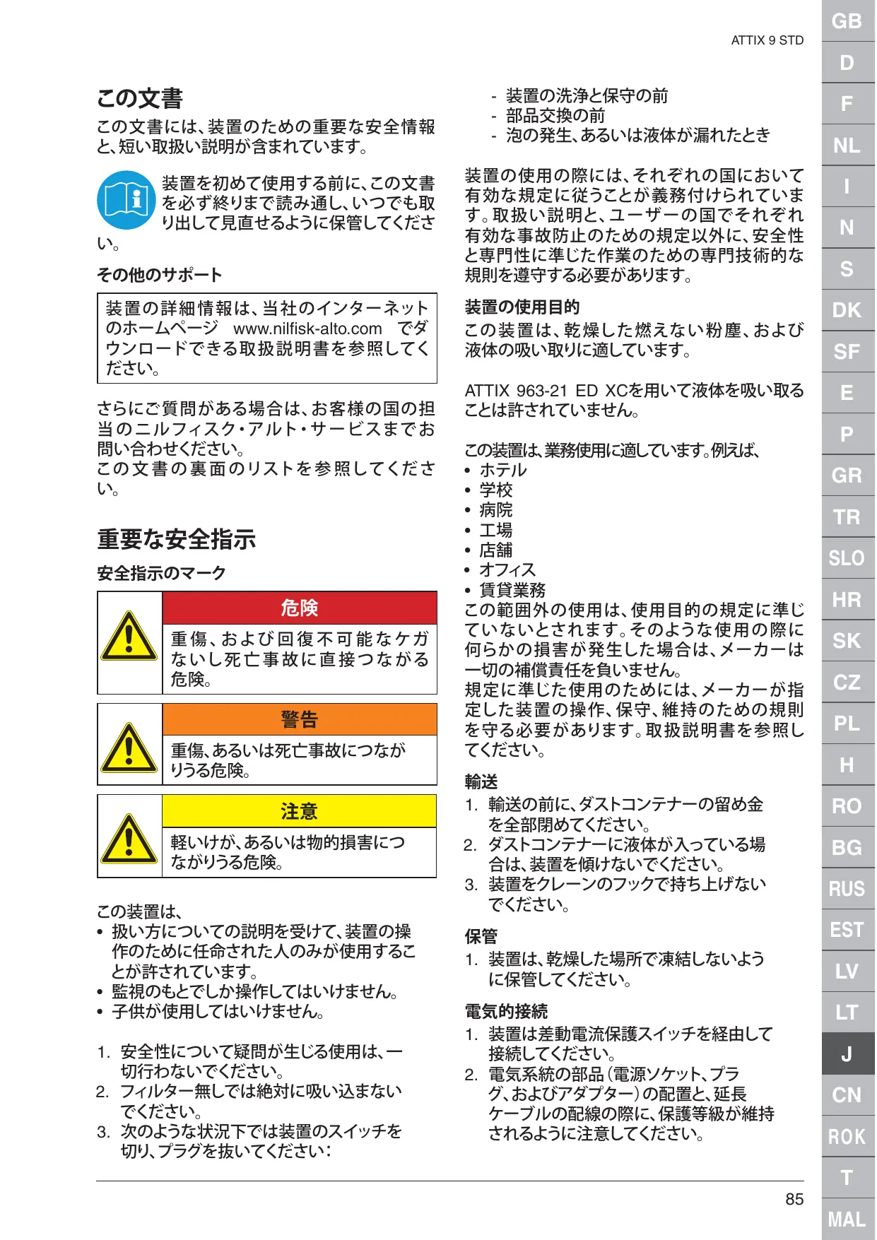 ATTIX 961-01 - 業務用掃除機 NILFISK - 無料のユーザーマニュアル