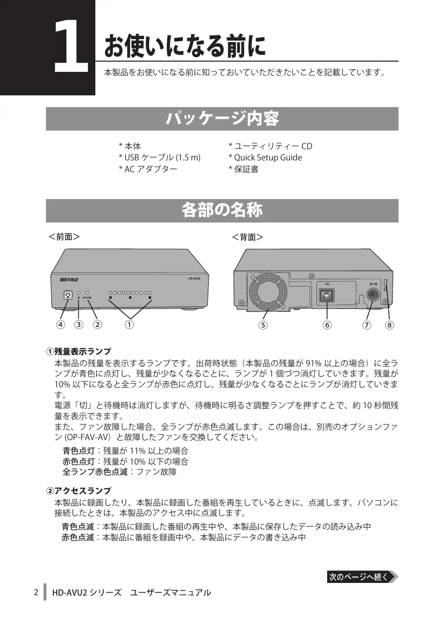 デバイスのマニュアルを無料で見つける HD-AVU2 BUFFALO PDF形式.
