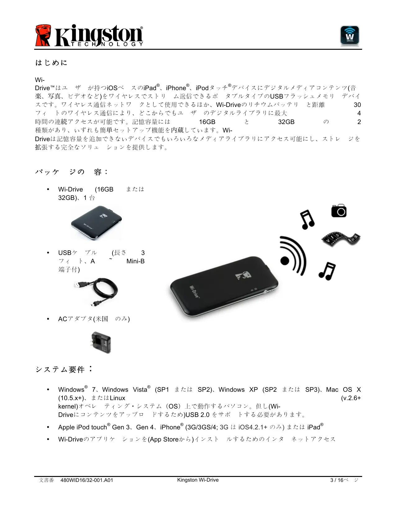 デバイスのマニュアルを無料で見つける WID KINGSTON PDF形式.