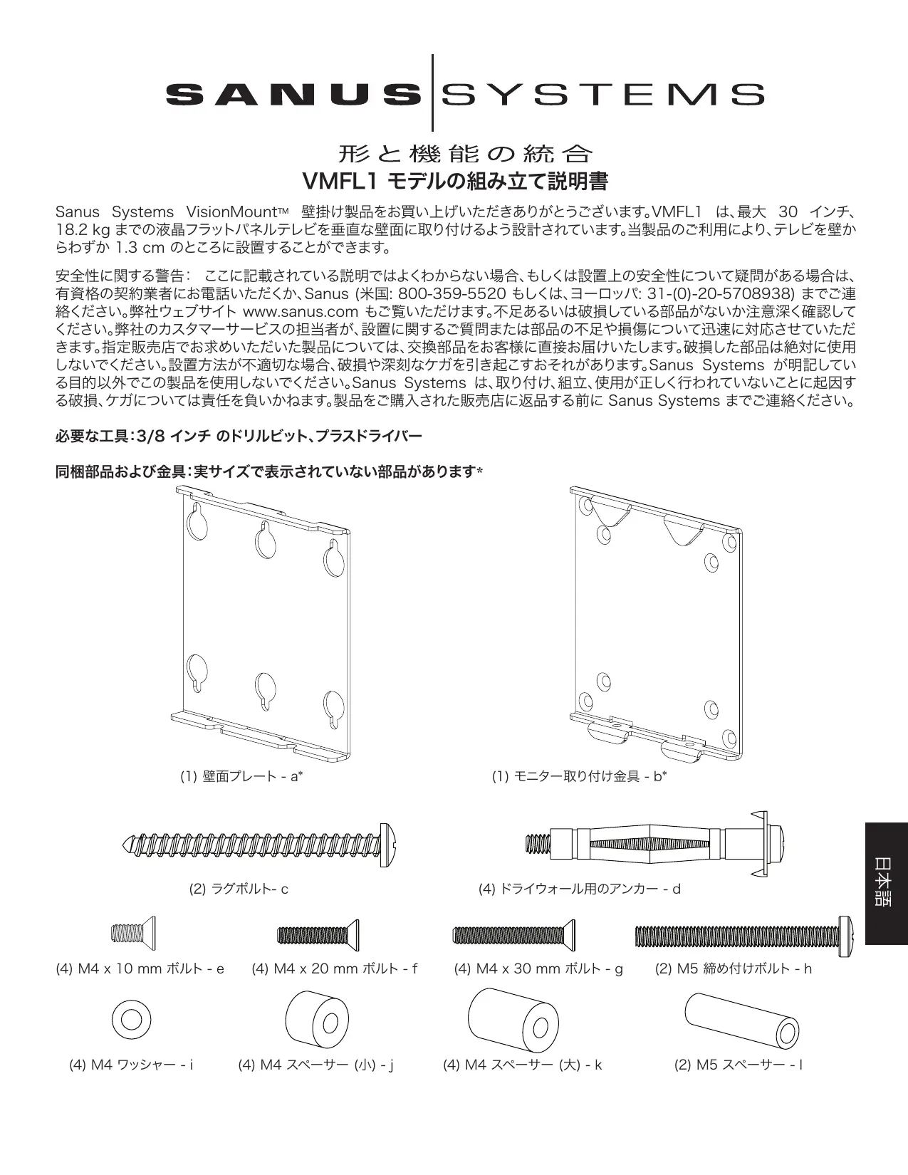 VMFL1 - テレビ壁掛け金具 SANUS - 無料のユーザーマニュアル