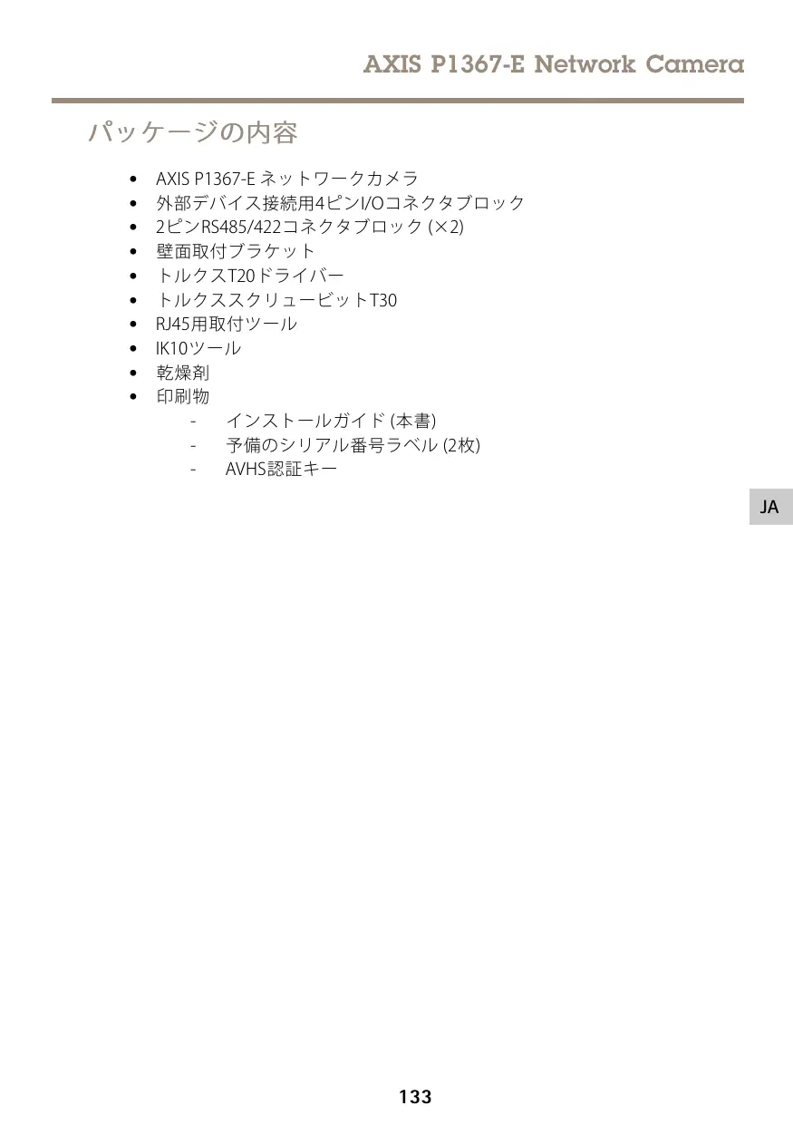 デバイスのマニュアルを無料で見つける P1367-E AXIS PDF形式.