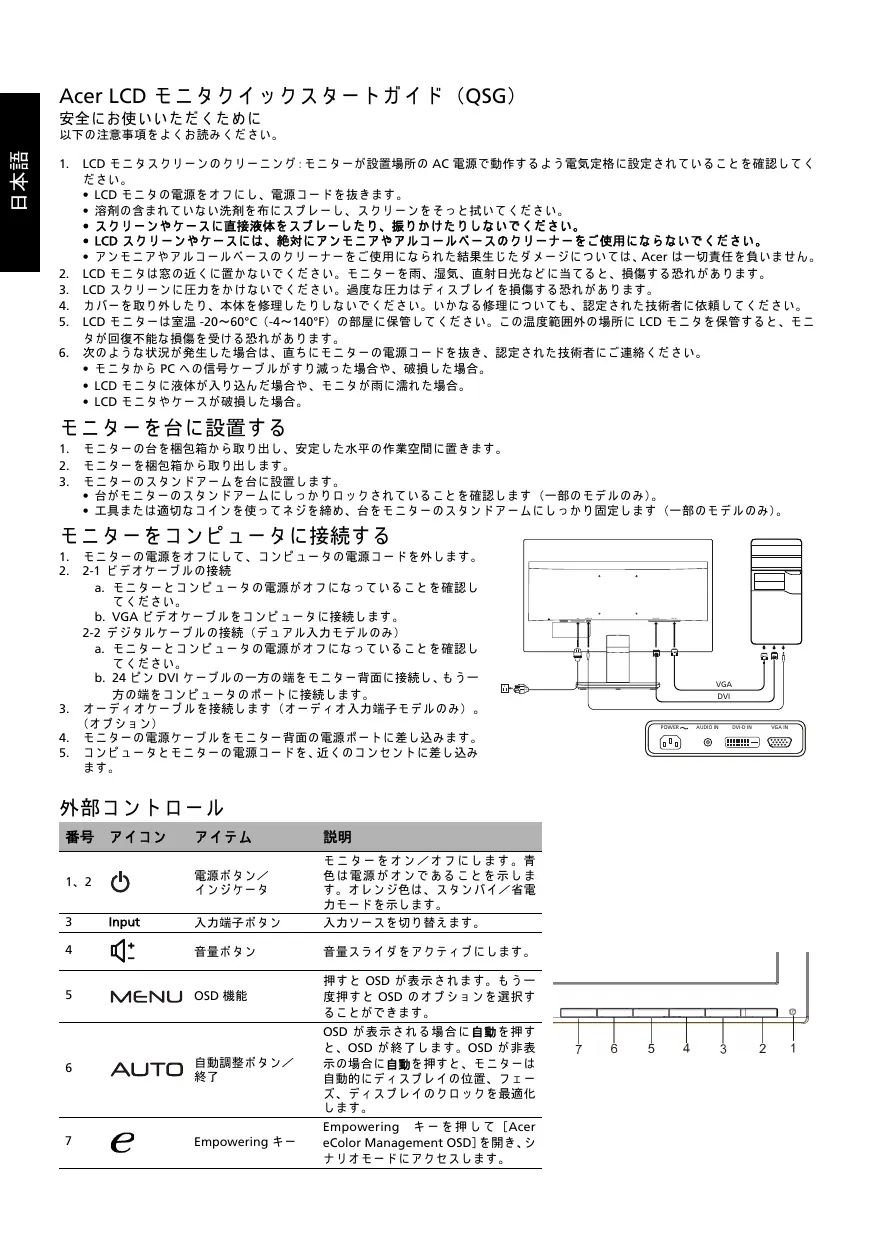 デバイスの取扱説明書をダウンロード コンピューターモニター 無料でPDF形式で!マニュアルを見つける VA190HQ - ACER 電子デバイスをもとに戻しましょう。このページにはデバイスの使用に必要なすべての書類が掲載されています。 VA190HQ ブランド ACER.