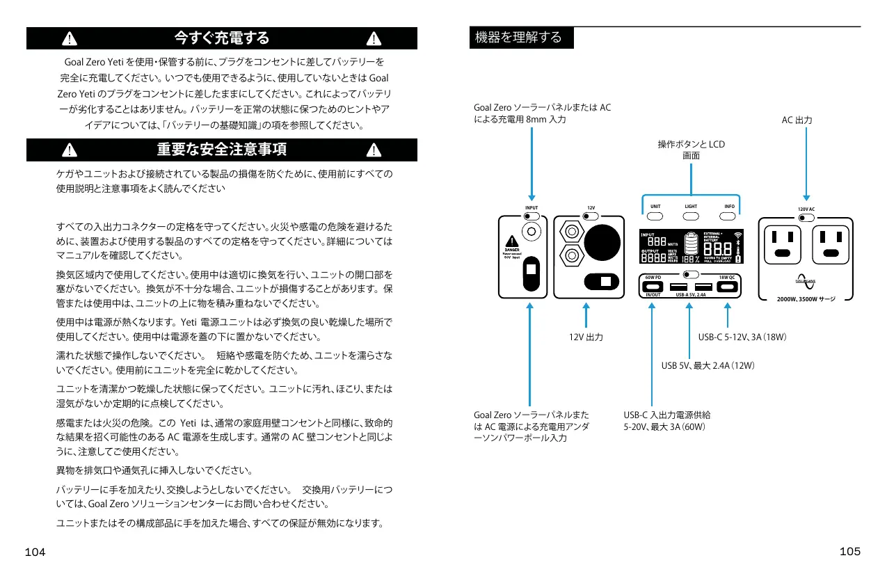 デバイスのマニュアルを無料で見つける YETI 6000X GOAL ZERO PDF形式.