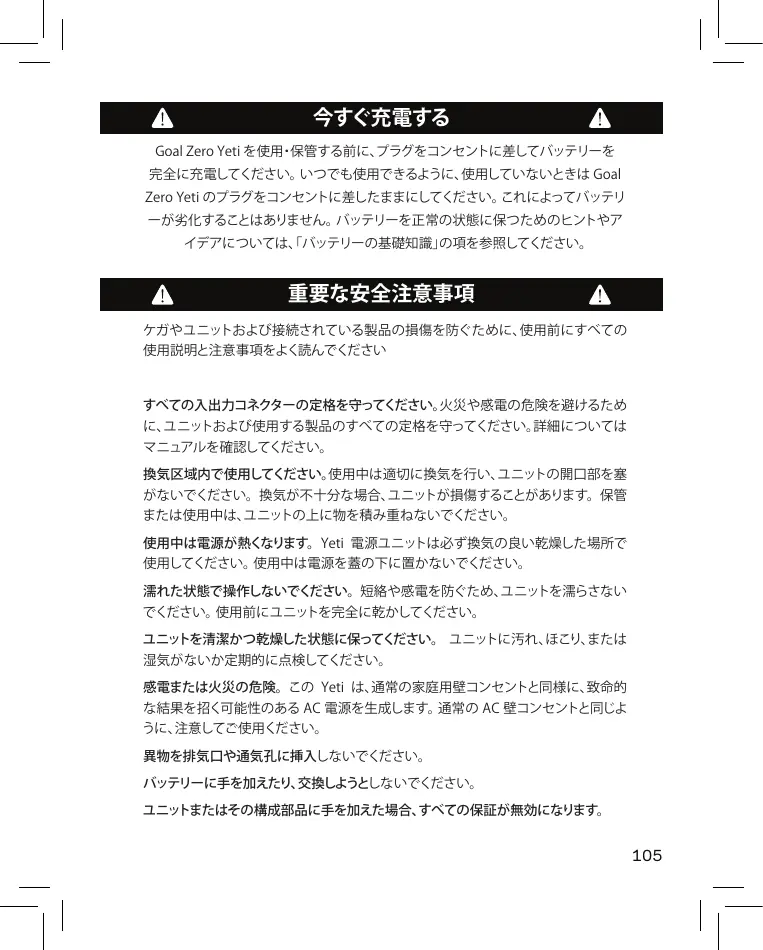 デバイスのマニュアルを無料で見つける YETI 1000W GOAL ZERO PDF形式.