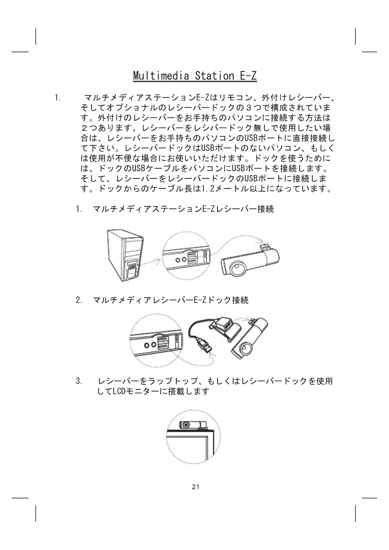 1. マルチメディアステーションE-Zはリモコン、外付けレシーバー、