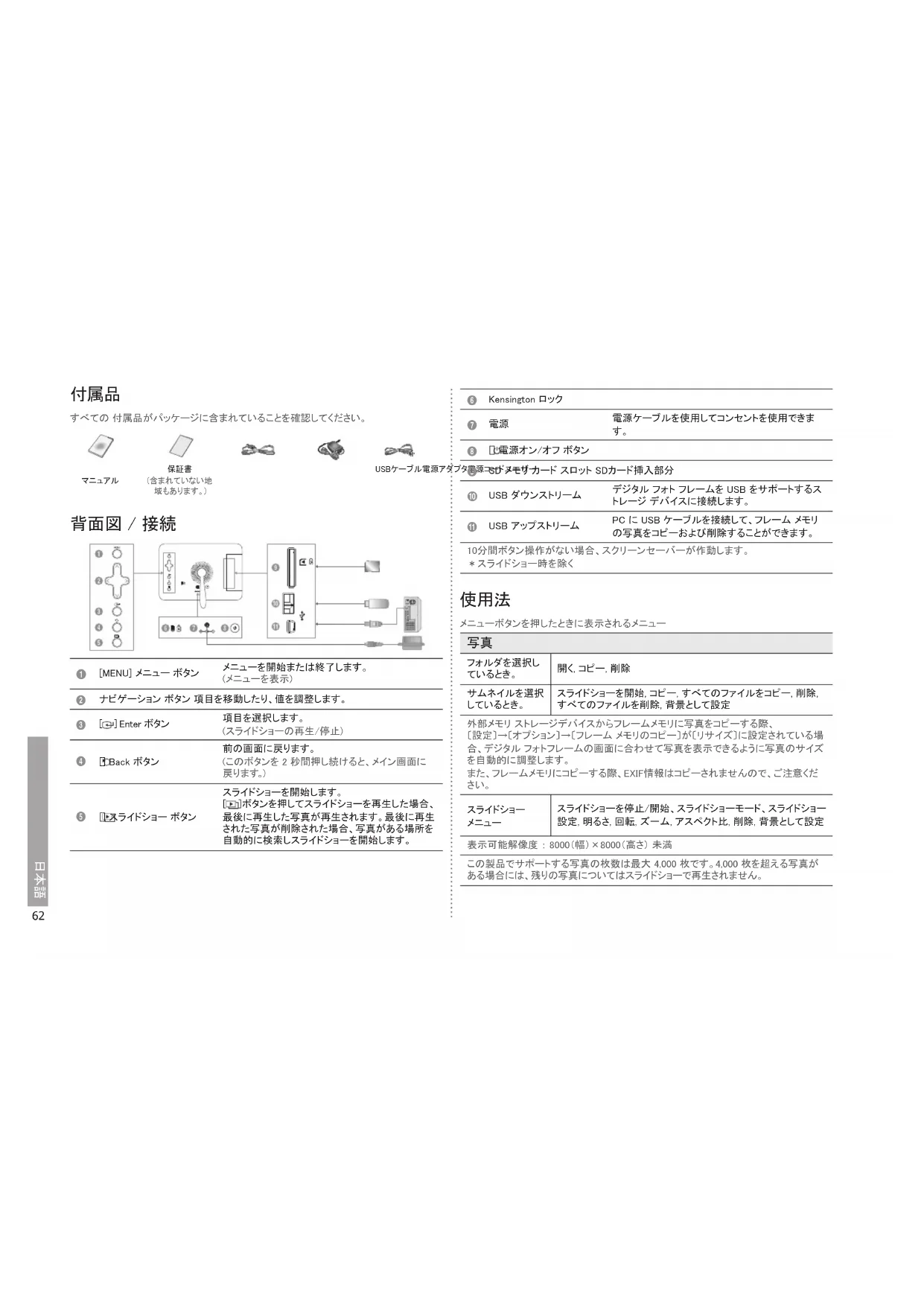 この製品でサポートする写真の枚数は最大 4,000 枚です。4,000 枚を超える写真が
