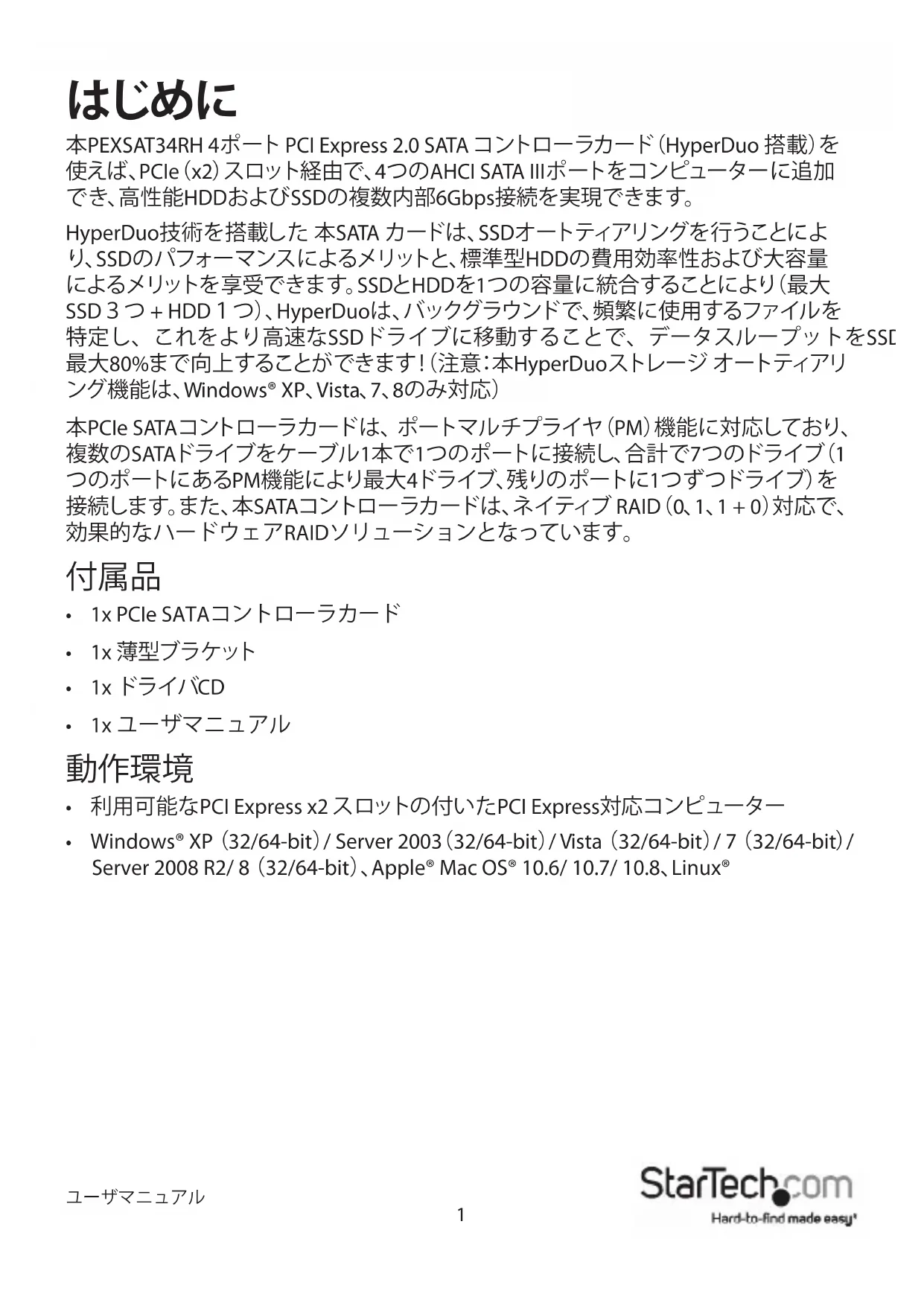 PEXSAT34RH - コントローラー StarTech.com - 無料のユーザーマニュアル