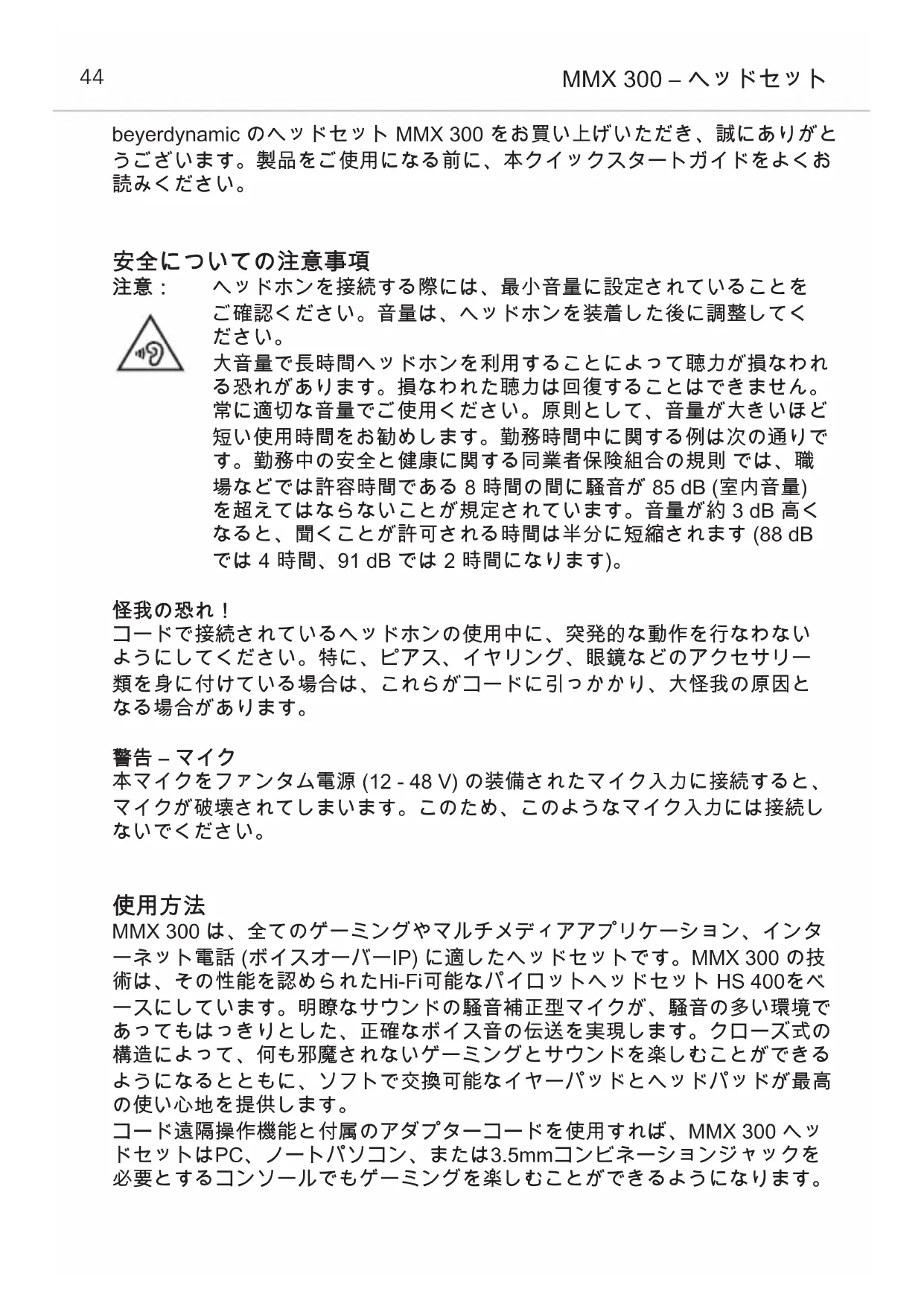 beyerdynamic のヘッドセット MMX 300 をお買い上げいただき、誠にありがと うございます。製品をご使用になる前に、本クイックスタートガイドをよくお
