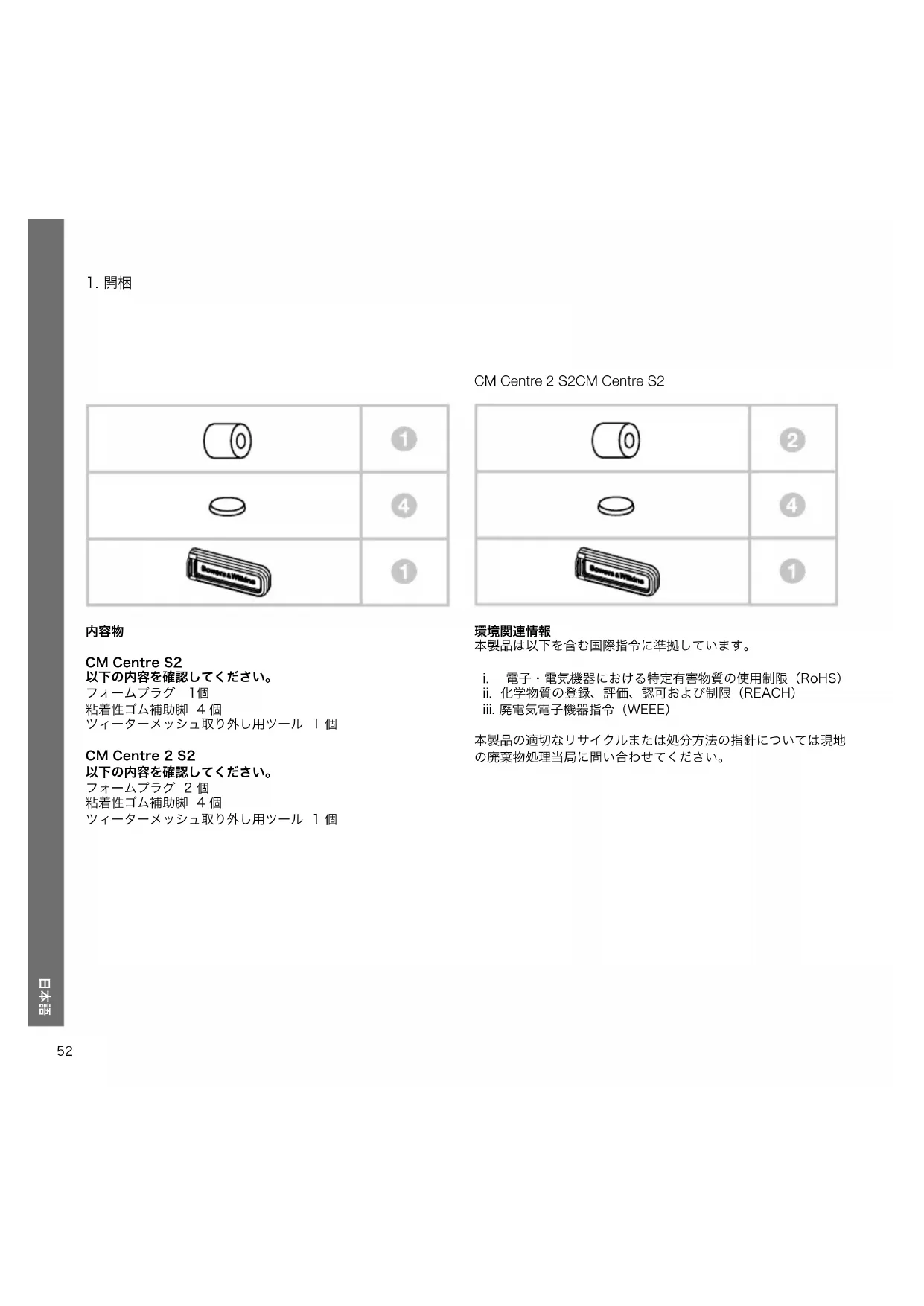本製品の適切なリサイクルまたは処分方法の指針については現地 の廃棄物処理当局に問い合わせてください。 CM Centre 2 S2CM Centre S2 日本語53