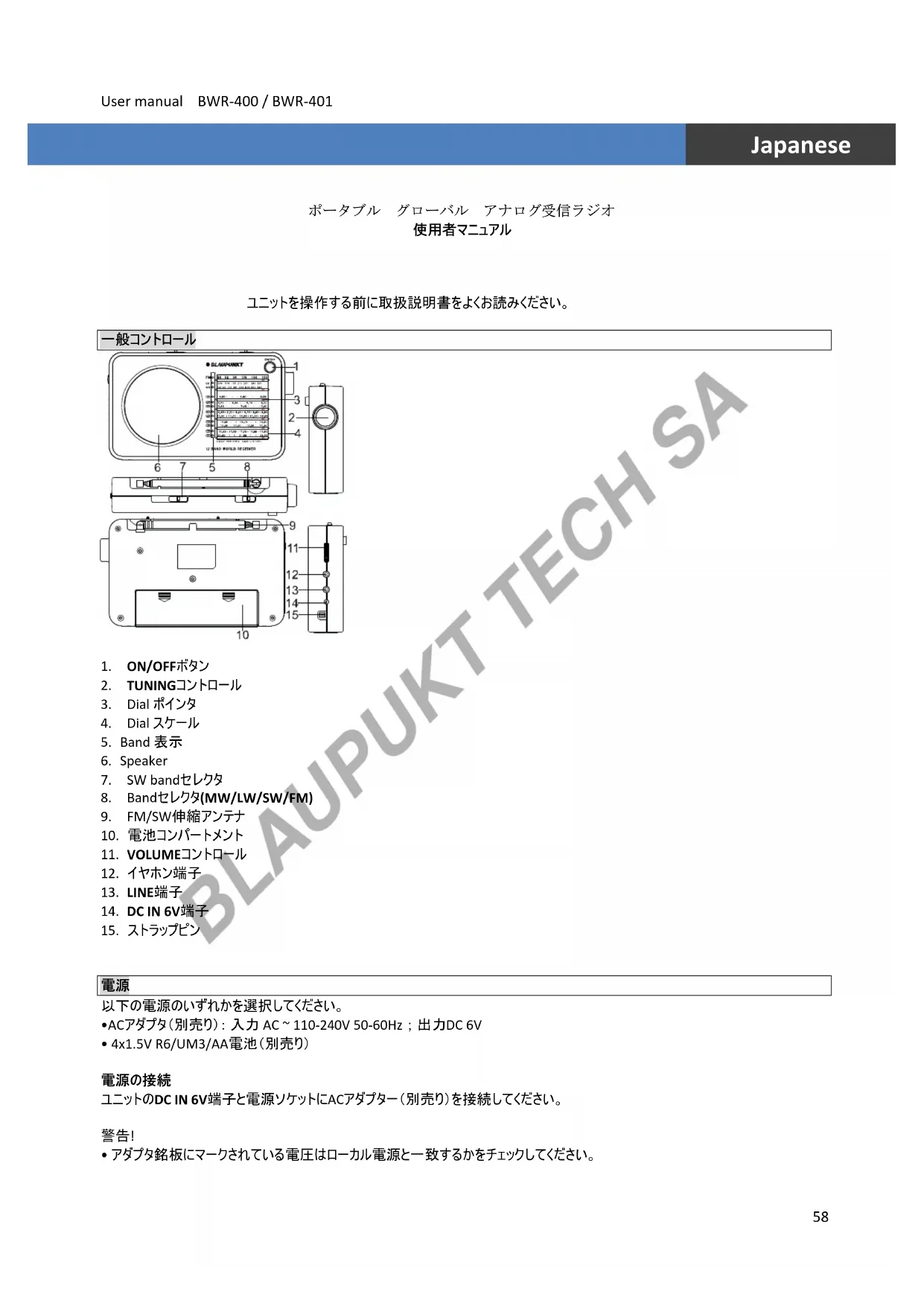 デバイスのマニュアルを無料で見つける BWR400 BLAUPUNKT PDF形式.