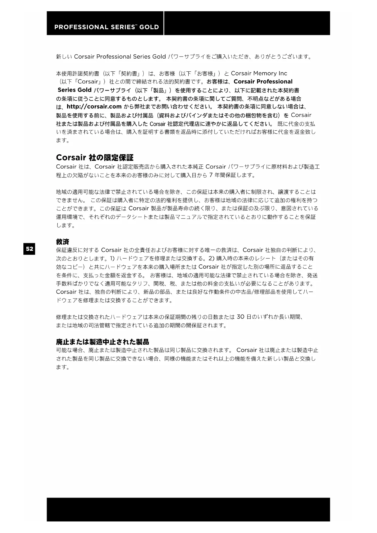 corsair.com/contact)または製品に付属のマニュアルを参照してください。54 PROFESSIONAL SERIES GOLD