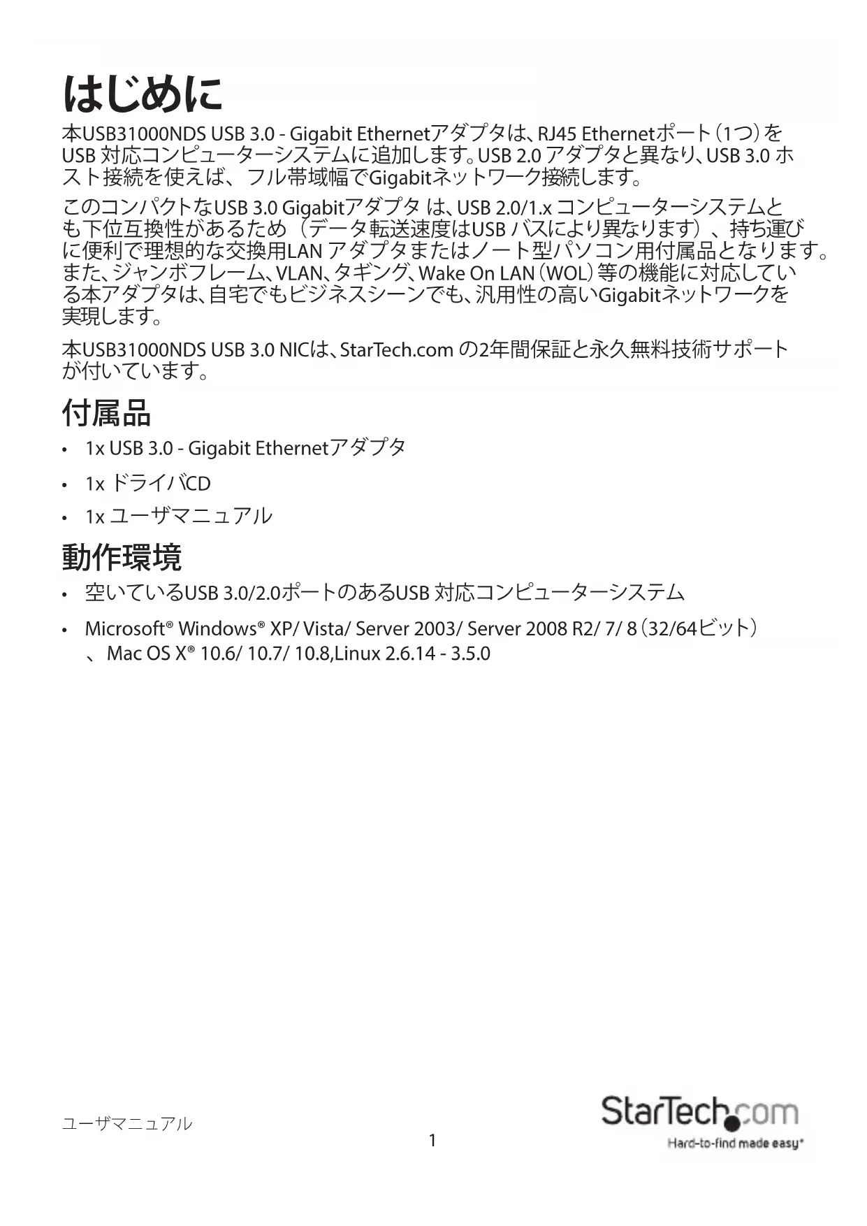 USB31000NDS - ネットワークカード / アダプター StarTech.com - 無料のユーザーマニュアル