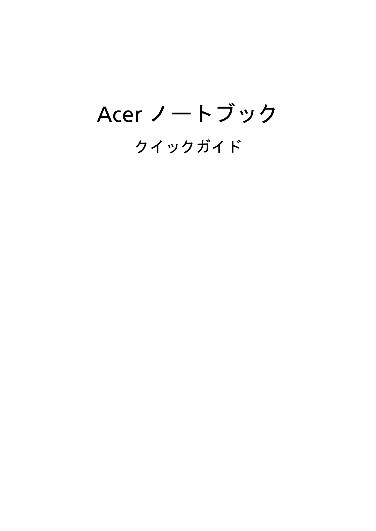 本製品を快適にご使用いただくために、次のガイドが提供されています。 Aspire シリーズユーザーガイドには、Aspire シリーズの全モデルに共通の情報が 記載されています。 本書にはキーパッド、オーディオの使い方など、基本的な情報 が含まれています。ユーザーガイドおよび以下に紹介する AcerSystem User Guide ( ユーザーガイド ) に記載される説明の中には、特定モデルにのみ適用されるものが あり、お客様が購入されたモデルには該当しない場合があります。 そのような場合 には、「特定モデルのみ」などのように注記が付けられています。 クイックガイドは、本 PC を生産的に使用するための方法を説明します。 AcerSystem User Guide ( ユーザーガイド ) は、本 PC についてわかりやすく説明し ておりますので、良くお読み頂き、指示に従ってください。このガイドには、シス テムユーティリティ、データ復元、拡張オプション、トラブルシューティングなど の詳細情報を記載しております。 また、このノート PC の保証、一般規制、安全規 定についても記載しています。マニュアルを印刷する必要がある場合、ユーザーズ マニュアルは PDF (Portable Document Format) ファイルで提供されています。以 下の手順に従ってください。