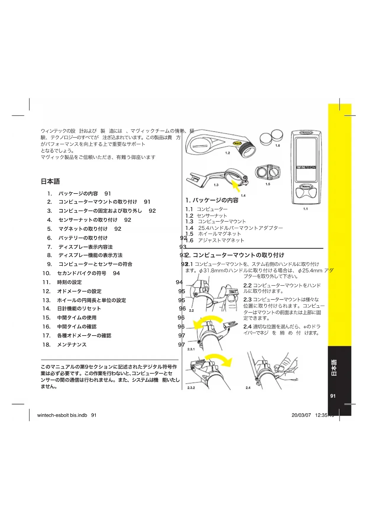 使用説明書 Wintech EBolt MAVIC