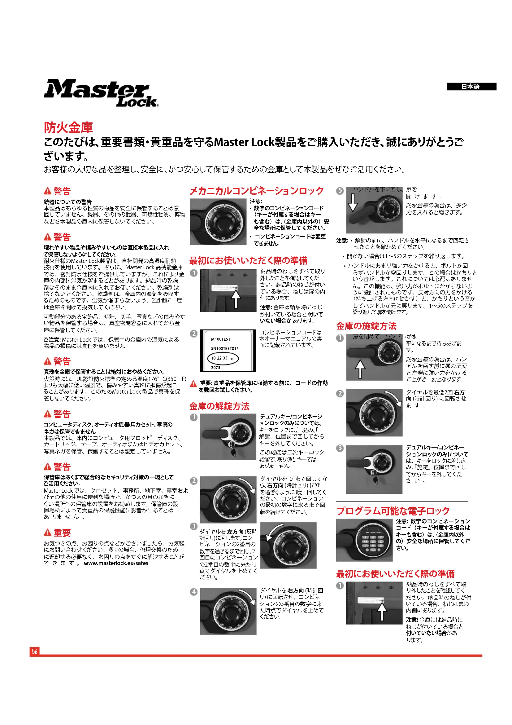 注意:MasterLockは、保管中的金庫内的湿気による物品の損傷に責任を負いいたします。