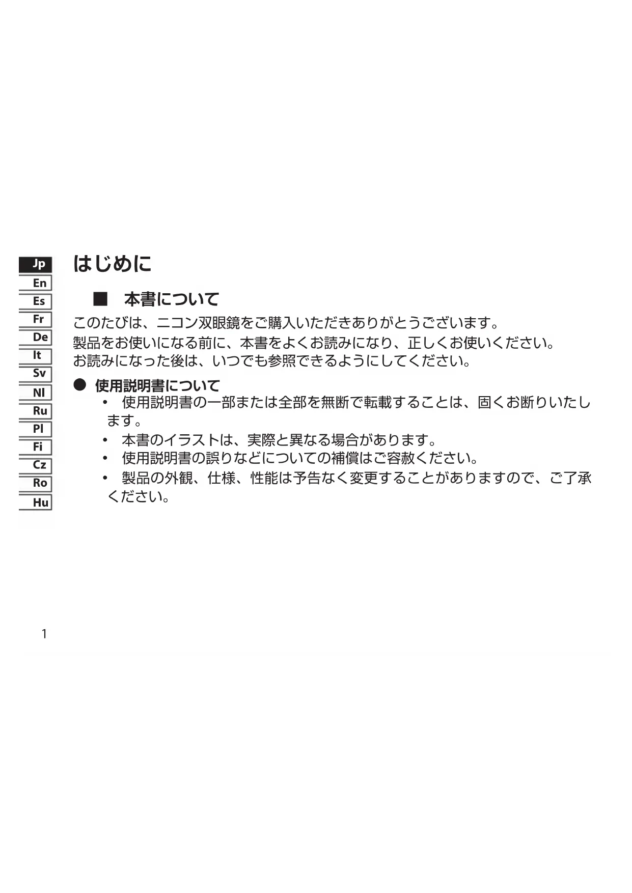 このたびは、ニコン双眼鏡をご購入いただきありがとうございます。 製品をお使いになる前に、本書をよくお読みになり、正しくお使いください。 お読みになった後は、いつでも参照できるようにしてください。