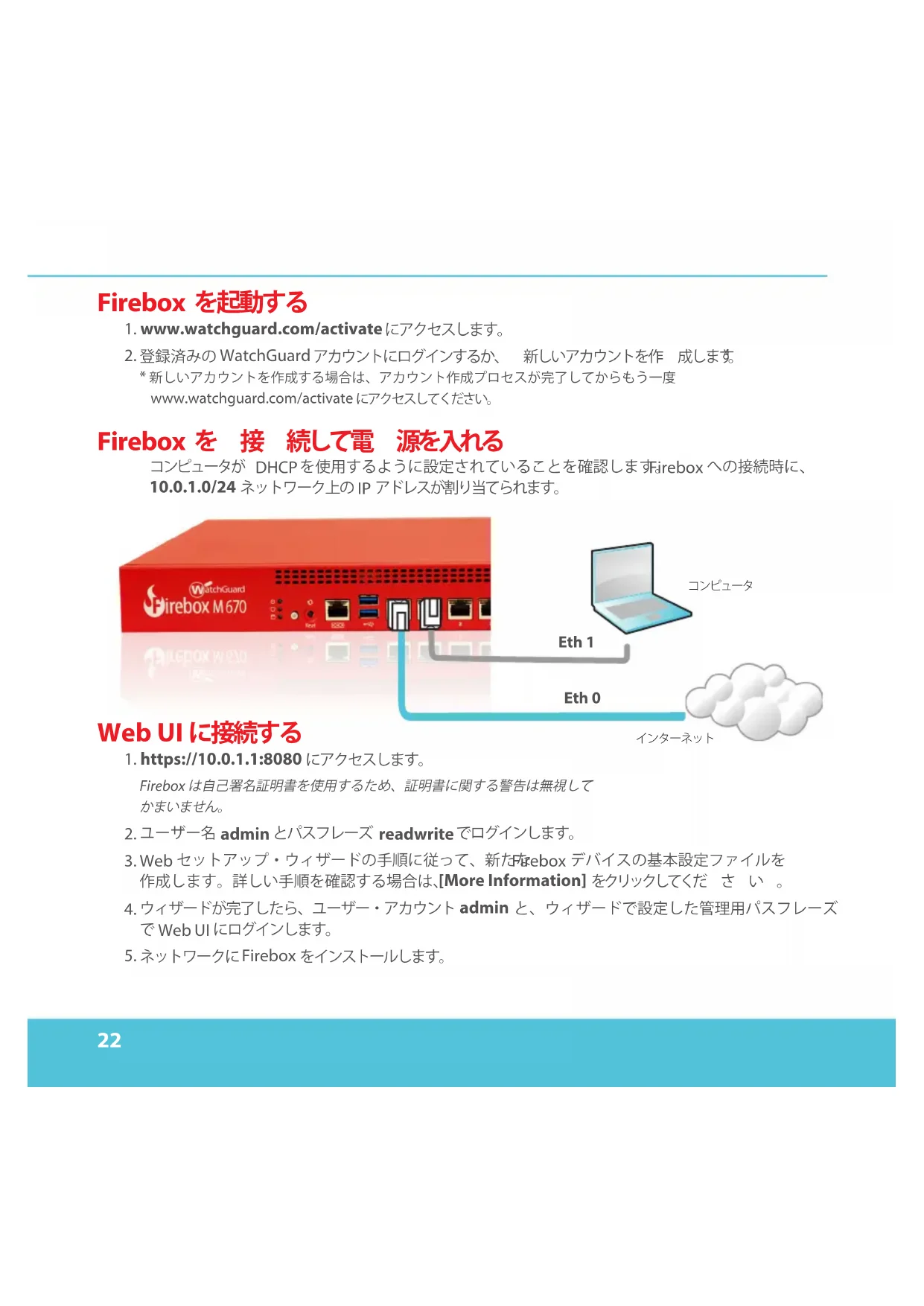 Firebox をインストールします。Eth 1Eth 0コンピュータインターネット 日本語23