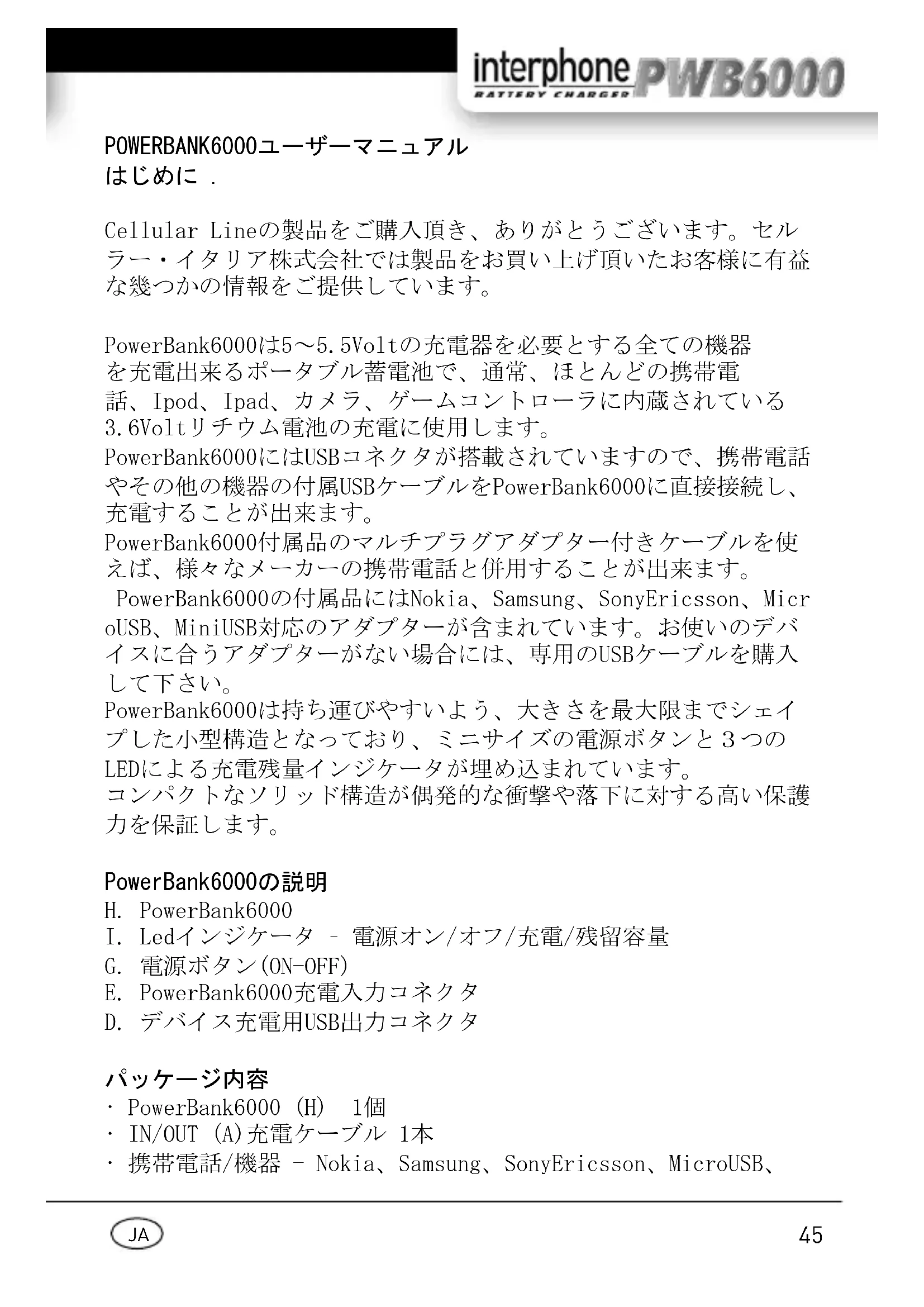 Interphone PWB6000 - モバイルバッテリー Cellular Line - 無料のユーザーマニュアル