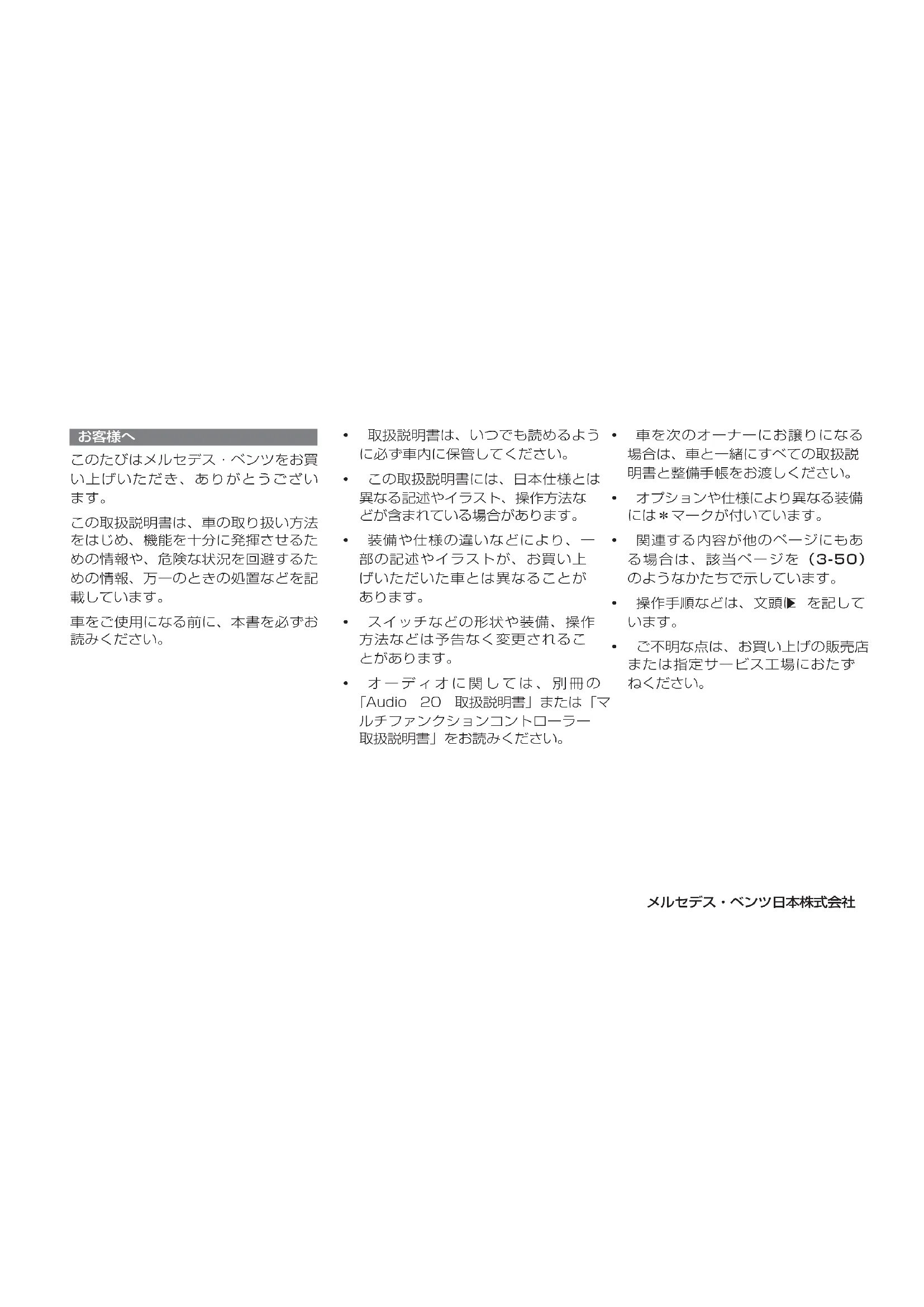 このたびはメルセデス・ベンツをお買い上げいただき、ありがとうございます。