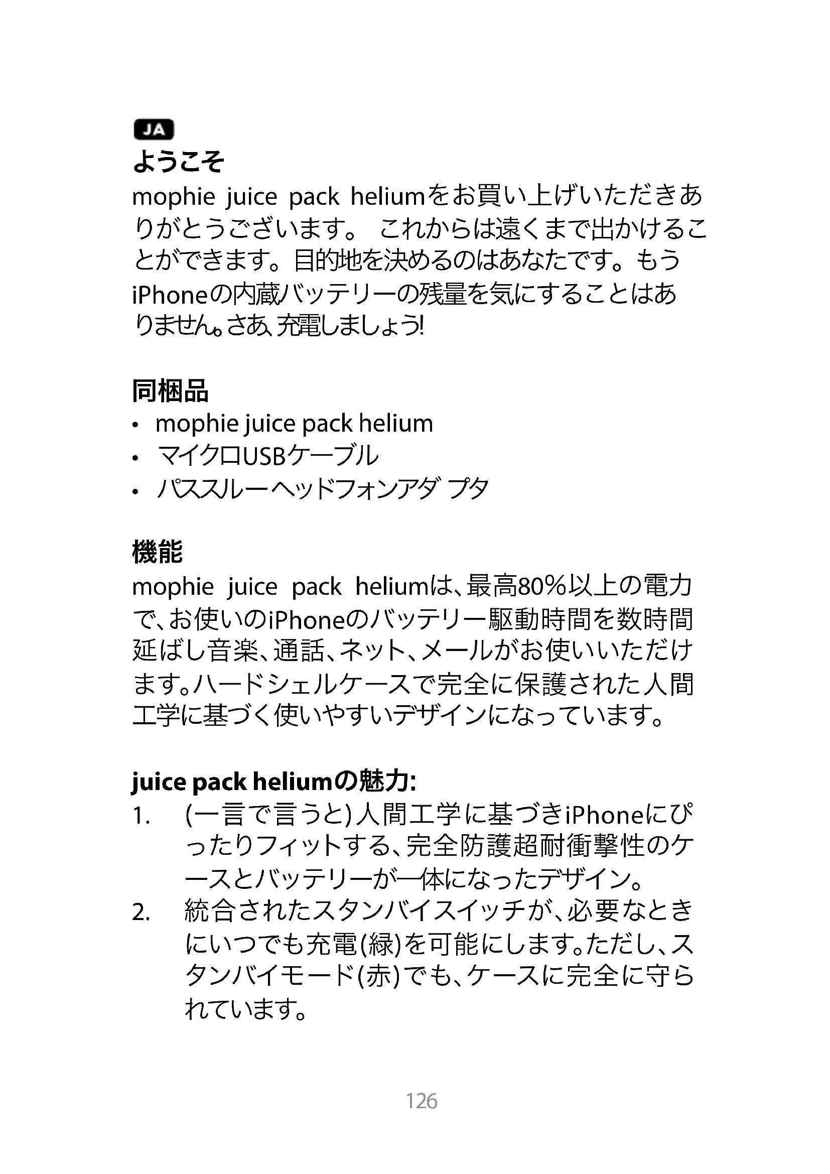 使用説明書 Juice pack helium for iPhone 5(s) Mophie