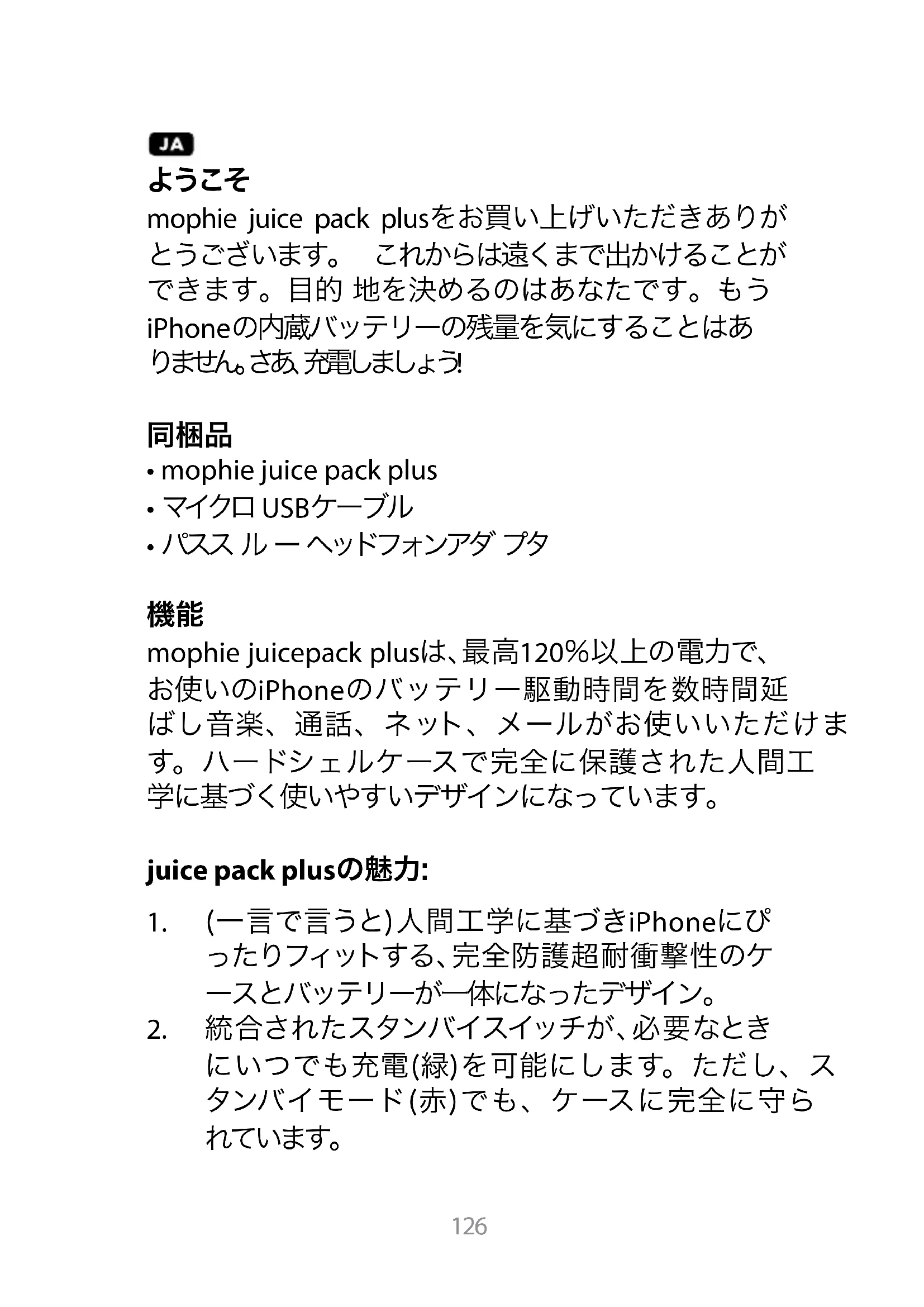 使用説明書 Juice pack plus for iPhone 5(s) Mophie