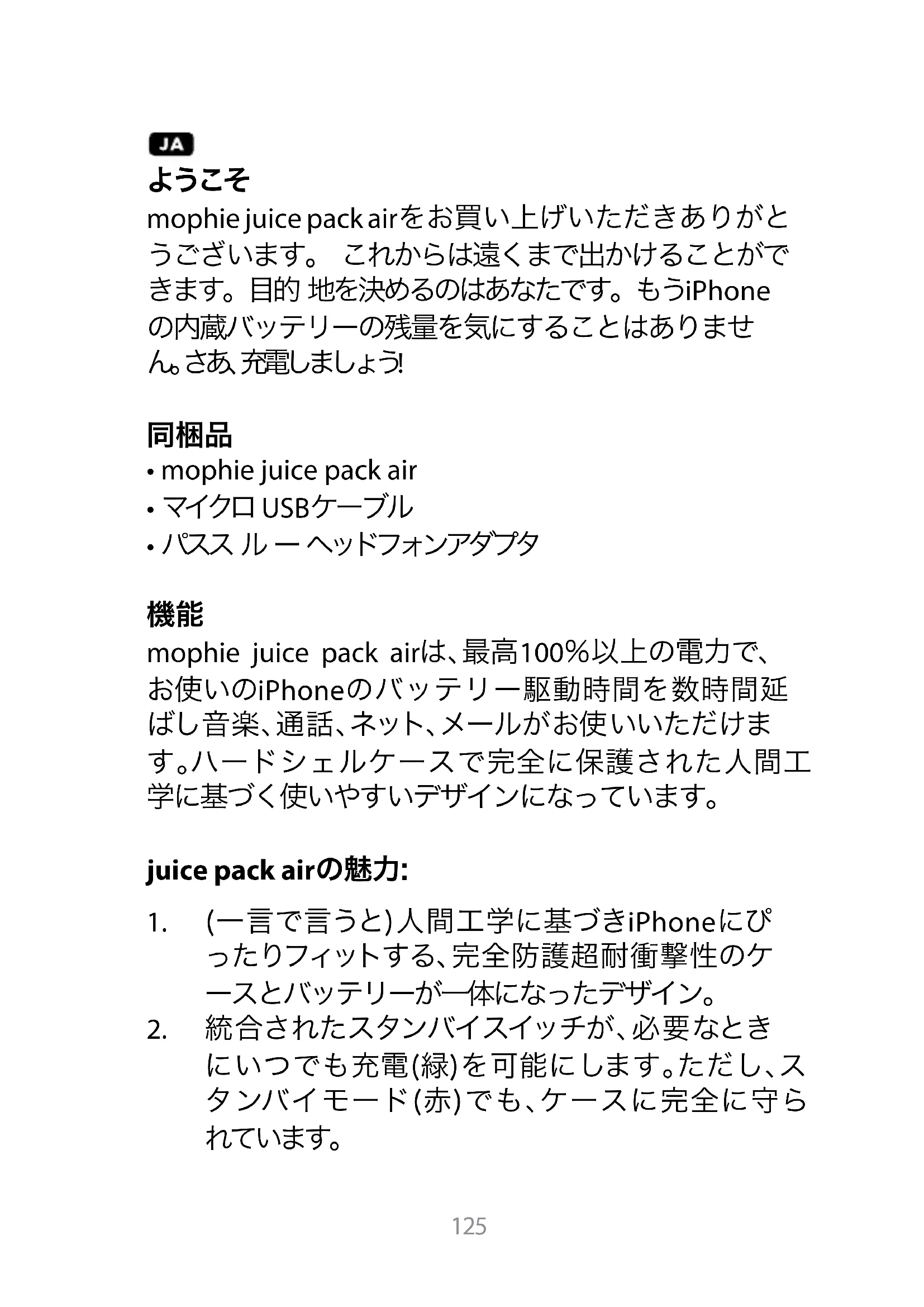 使用説明書 Juice pack air for iPhone 5(s) Mophie