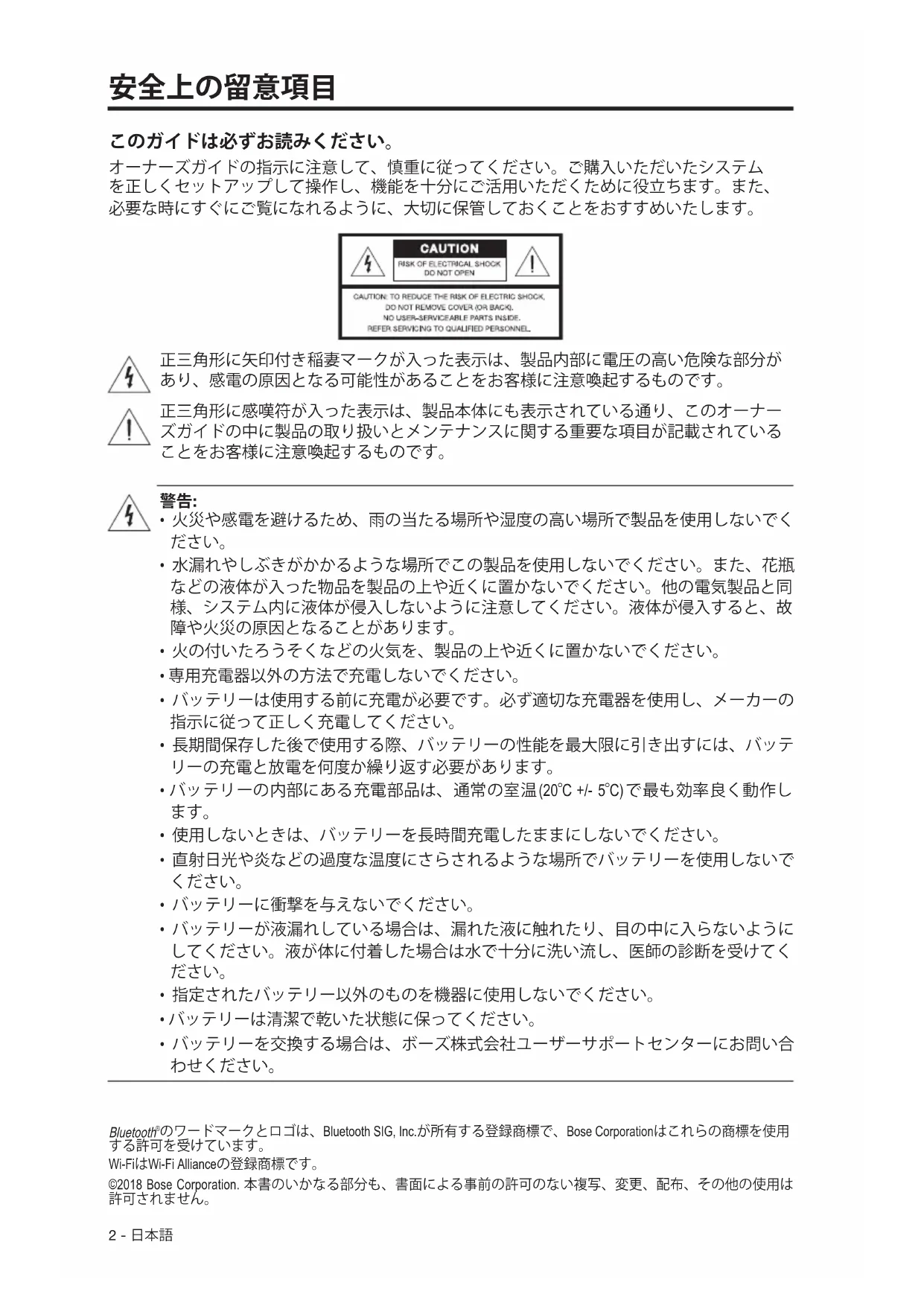 ©2018 Bose Corporation. 本書のはんだ部分も、書面による事前所の許可のない複写、変更、配布、その他的使用は許可さGES。
