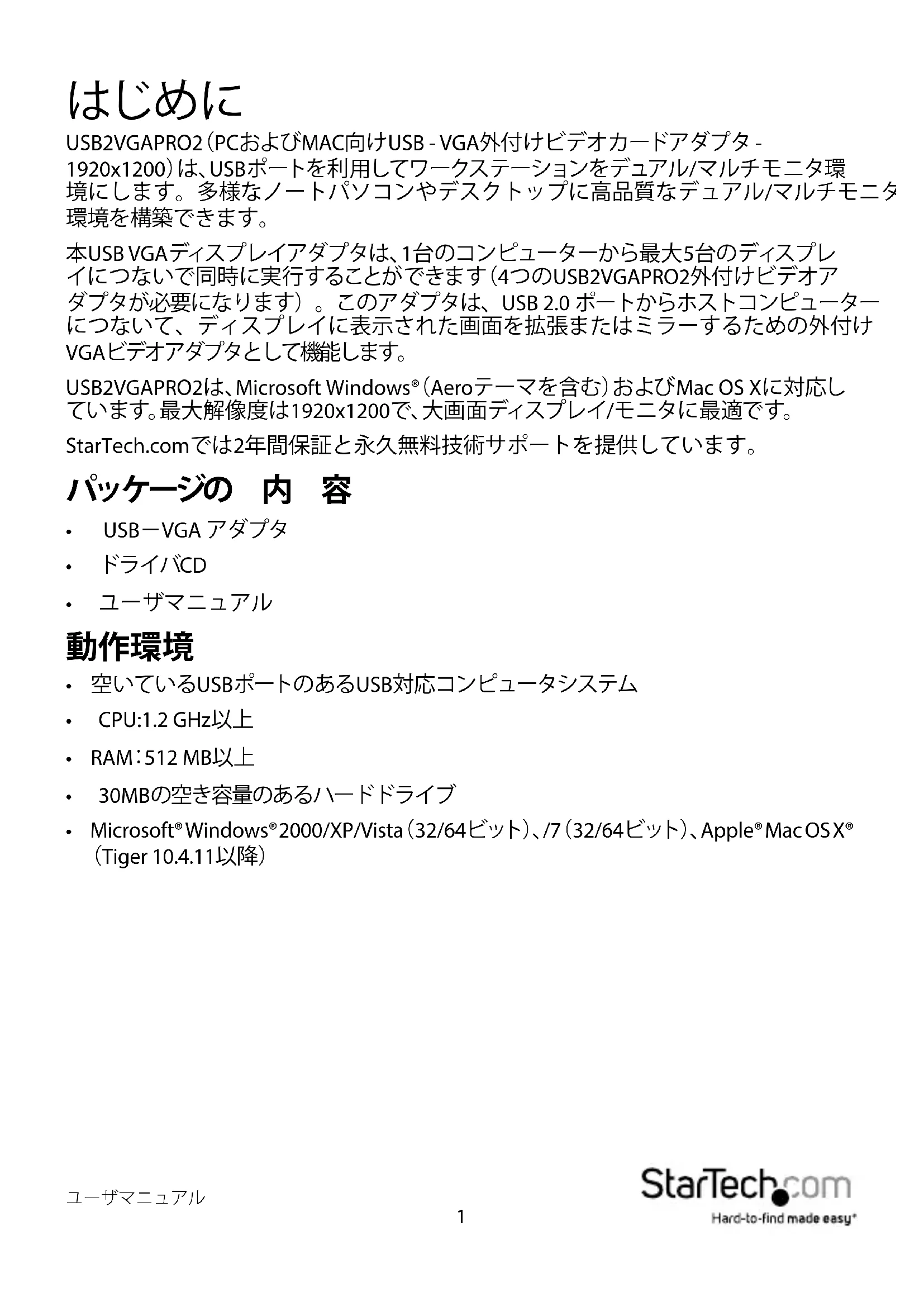 デバイスのマニュアルを無料で見つける USB2VGAPRO2 StarTech.com PDF形式.