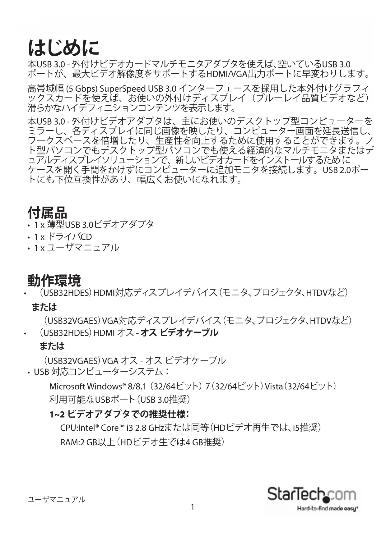 USB32HDES - ネットワークカード / アダプター StarTech.com - 無料のユーザーマニュアル