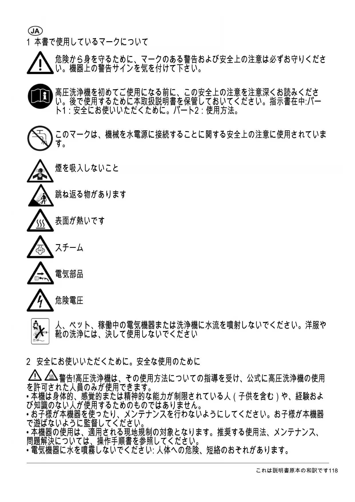 操作說明書に記載いたします。MENNTANNS才レーニンのみを実行くださいます。機器の安全を確保いたします:才リジルのNilfiskスアバーリフを使用くださいます。高压洗淨機に技術の効修改正を行動いたします。洗淨器は、MENNTANSS計画に従い、Nilfisk認定販売業者に定期保守を行わてくださいます。定期保守が行動いたします。保証は無効 SCNります。