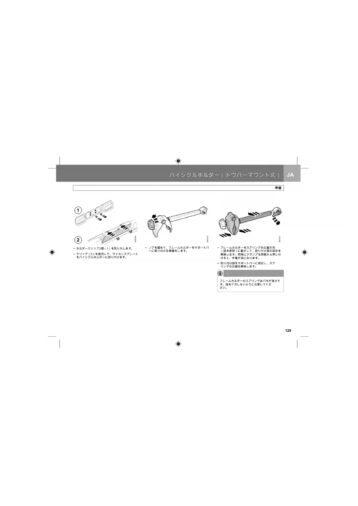 136─ 調節スクリューを締め付けます。 バイシクルホルダー(トウバーマウント式)