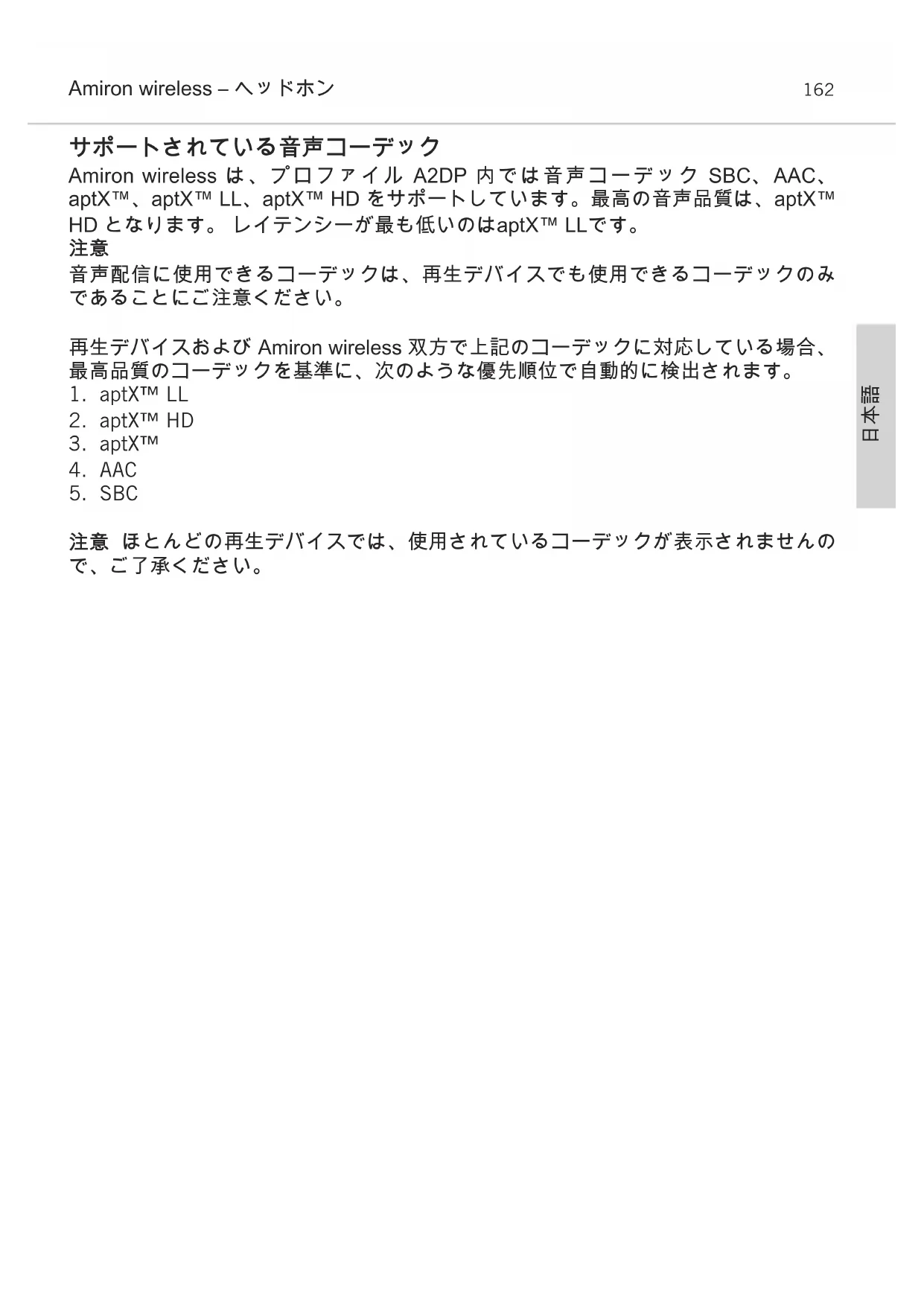 ほとんどの再生デバイスでは、使用されているコーデックが表示されませんの で、ご了承ください。日本語 Amiron wireless – ヘッドホン