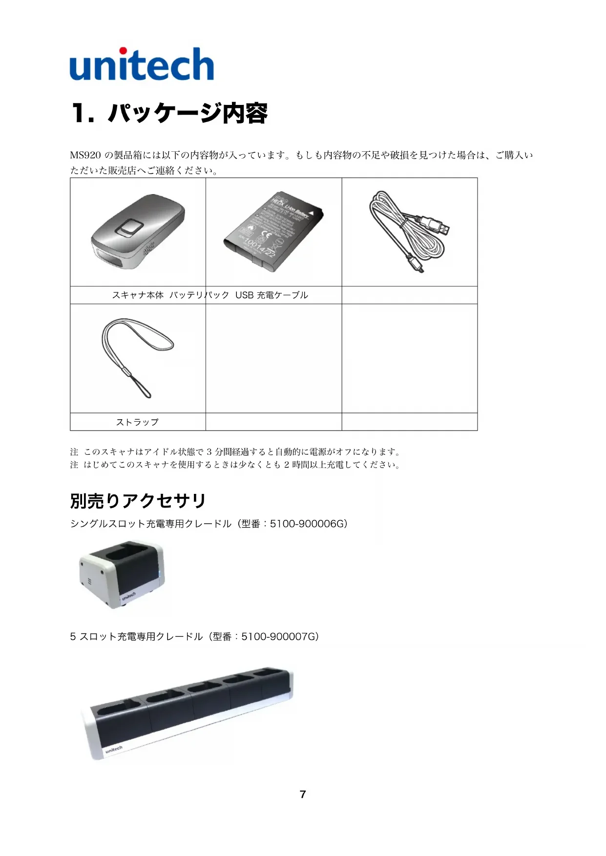 使用説明書 MS920 Unitech