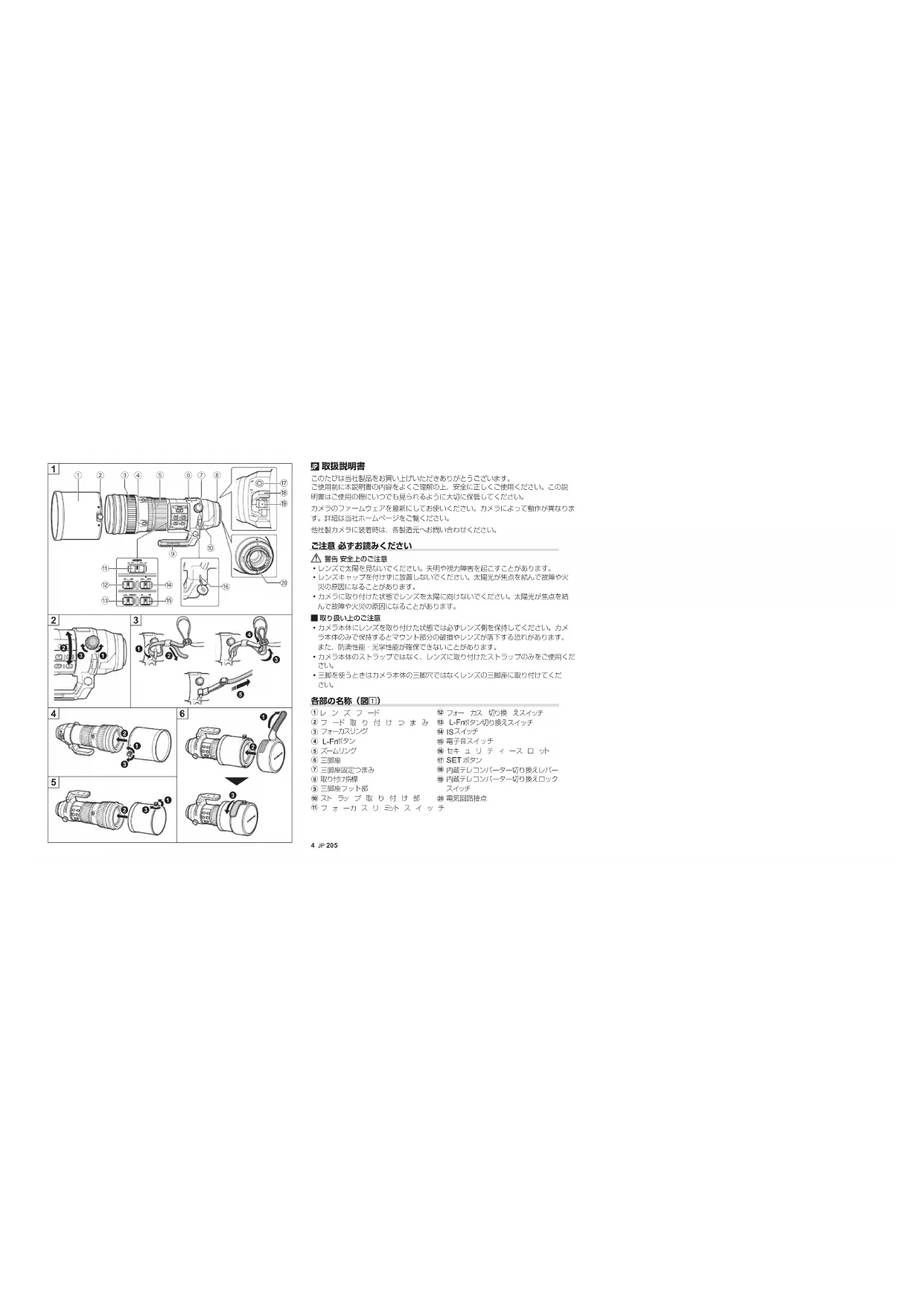 このたびは当社製品をお買い上げいただきありがとうございます。ご使用前に本説明書の内容をよくご理解の上、安全に正しくご使用ください。この説明書はご使用の際にいつでも見られるように大切に保管してください。カメラのファームウェアを最新にしてお使いください。カメラによって動作が異なります。詳細は当社ホームページをご覧ください。他社製カメラに装着時は、各製造元へお問い合わせください。