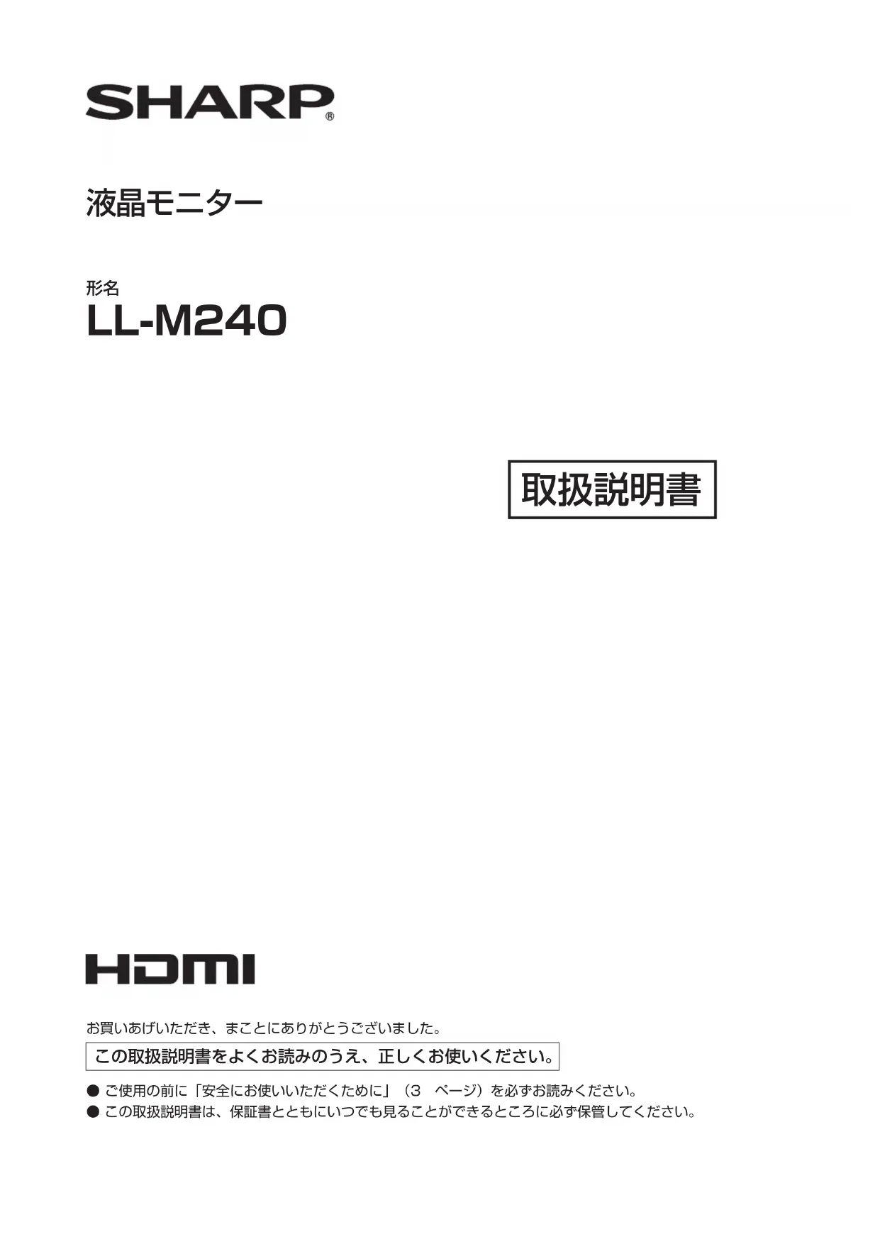 LL-M240 お買いあげいただき、まことにありがとうございました。 この取扱説明書をよくお読みのうえ、正しくお使いください。 ●ご使用の前に「安全にお使いいただくために」(3 ページ)を必ずお読みください。●この取扱説明書は、保証書とともにいつでも見ることができるところに必ず保管してください。2