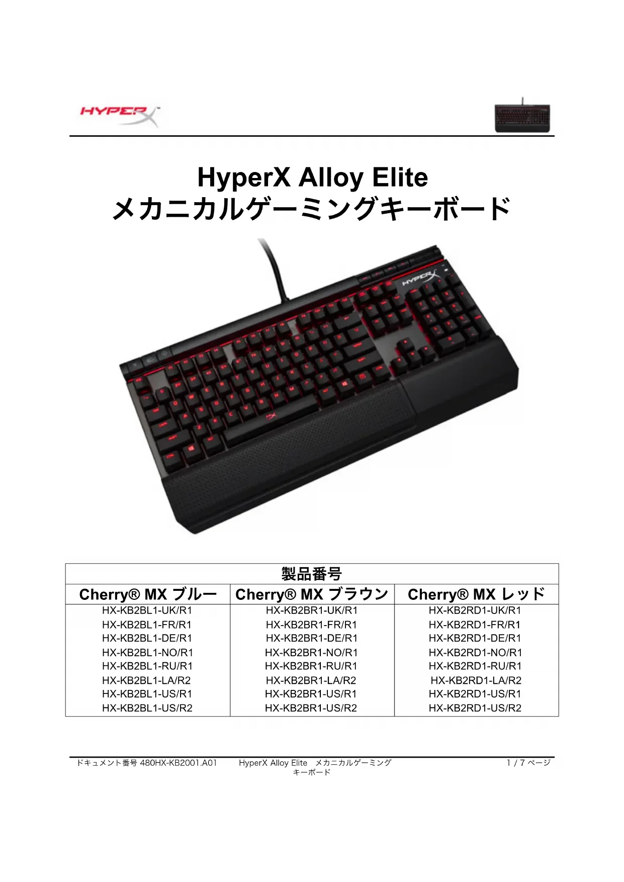 - リストレストドキュメント番号480HX-KB2001.A01 HyperXAlloyElite メカニカルゲーミング