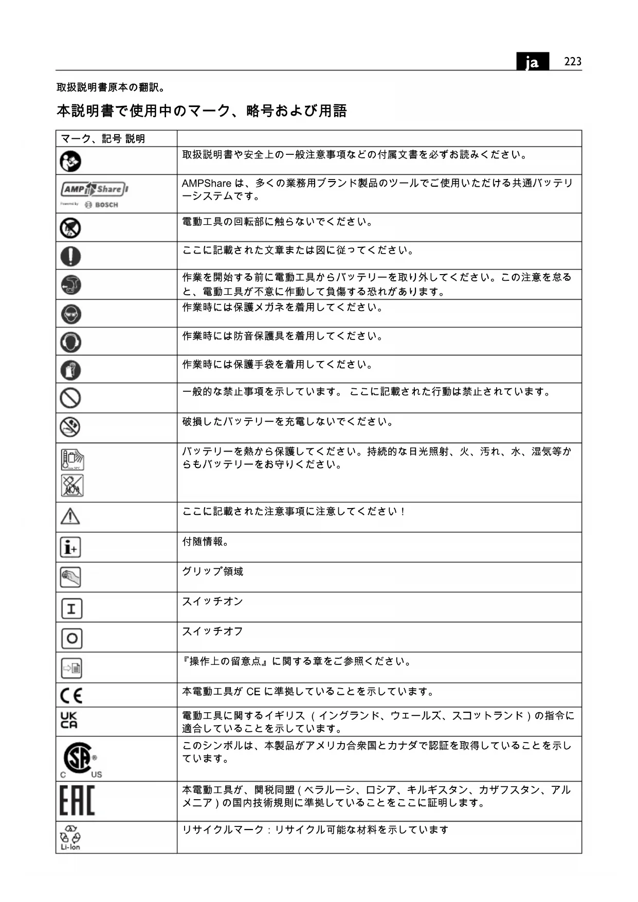 | 本電動工具がCEに準拠してる,thisを示ります。 | |