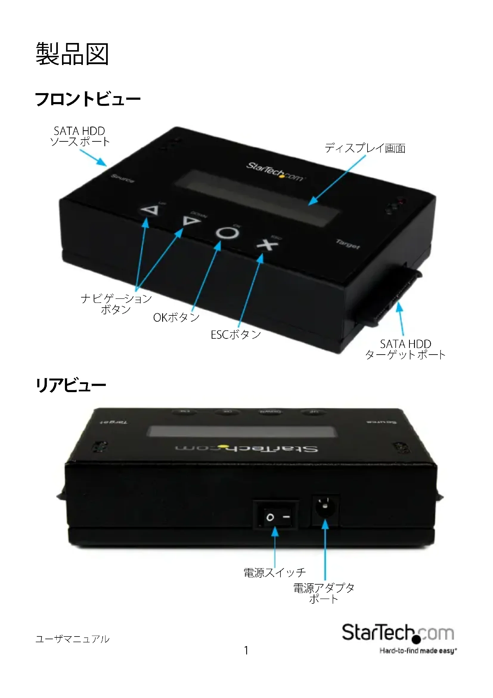 デバイスの取扱説明書をダウンロード ハードドライブ 無料でPDF形式で!マニュアルを見つける SATDUP11IMG - StarTech.com 電子デバイスをもとに戻しましょう。このページにはデバイスの使用に必要なすべての書類が掲載されています。 SATDUP11IMG ブランド StarTech.com.