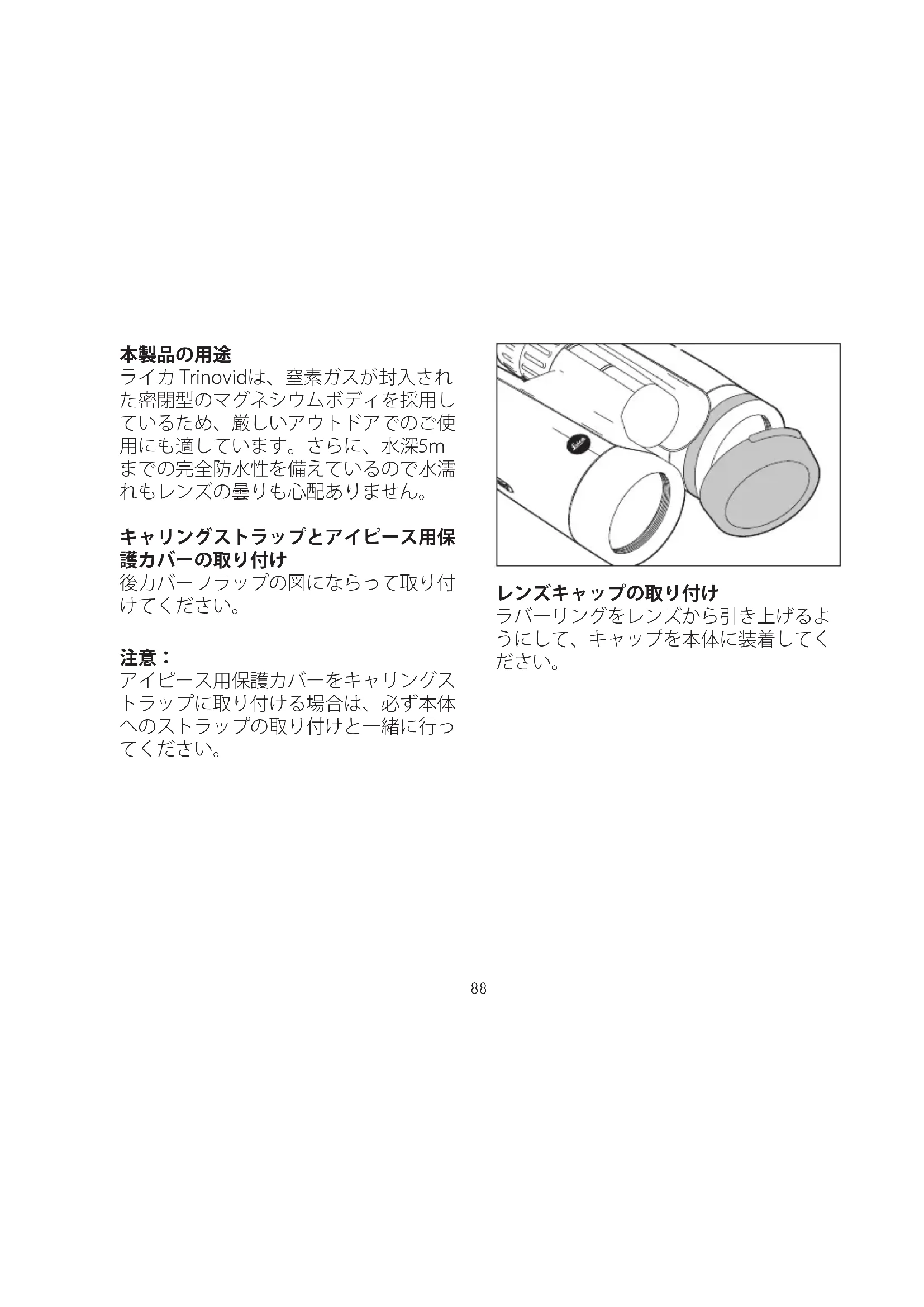 ・ 太陽や強い光線を双眼鏡で見ることは絶対にお止めください。 瞳が損傷する恐れがあります。 ・ 歩きながら双眼鏡を使用することはお止めください。 思わぬ事故や怪我の元となります。88