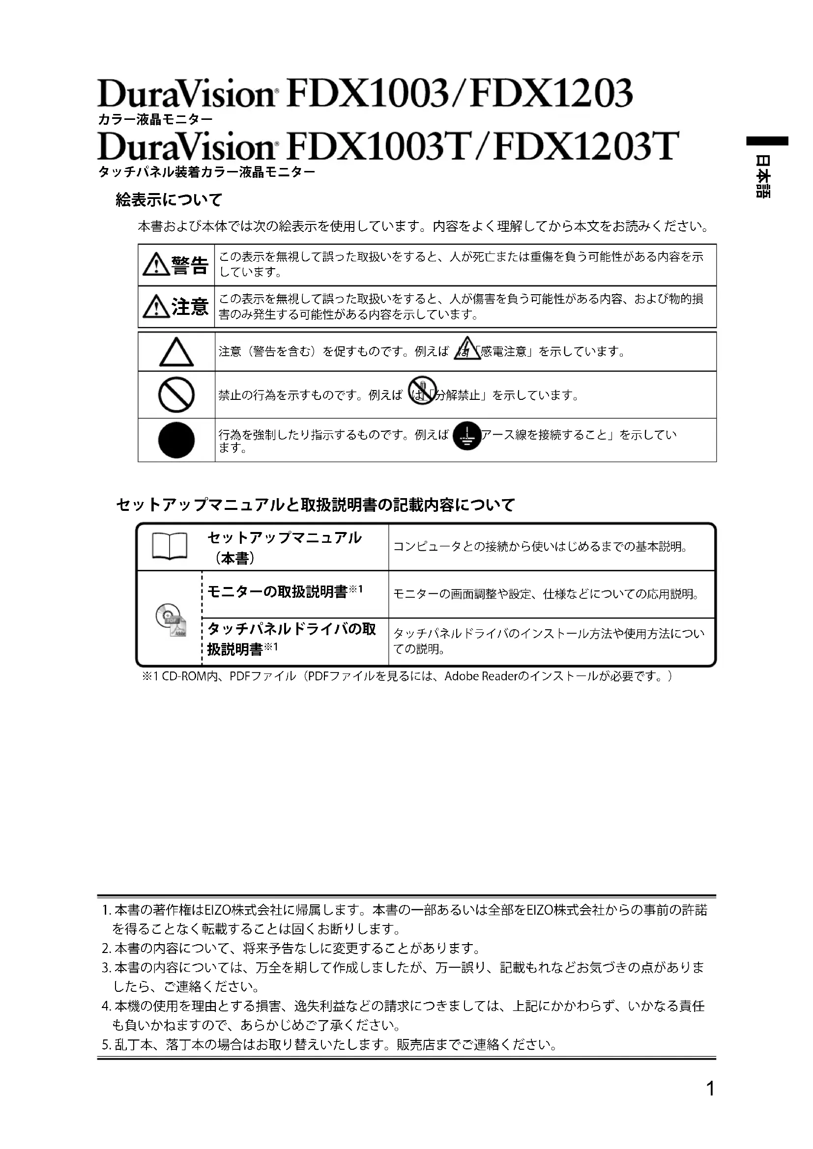 使用説明書 DuraVision FDX1203 EIZO