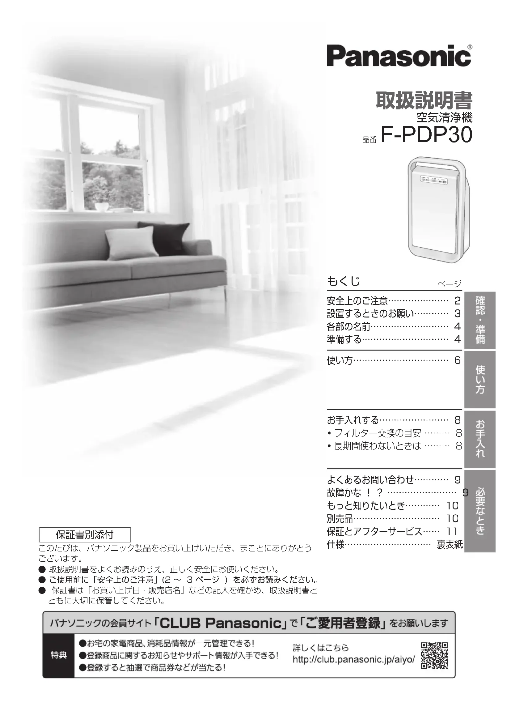 FPDP30 - 空気清浄機 PANASONIC - 無料のユーザーマニュアル