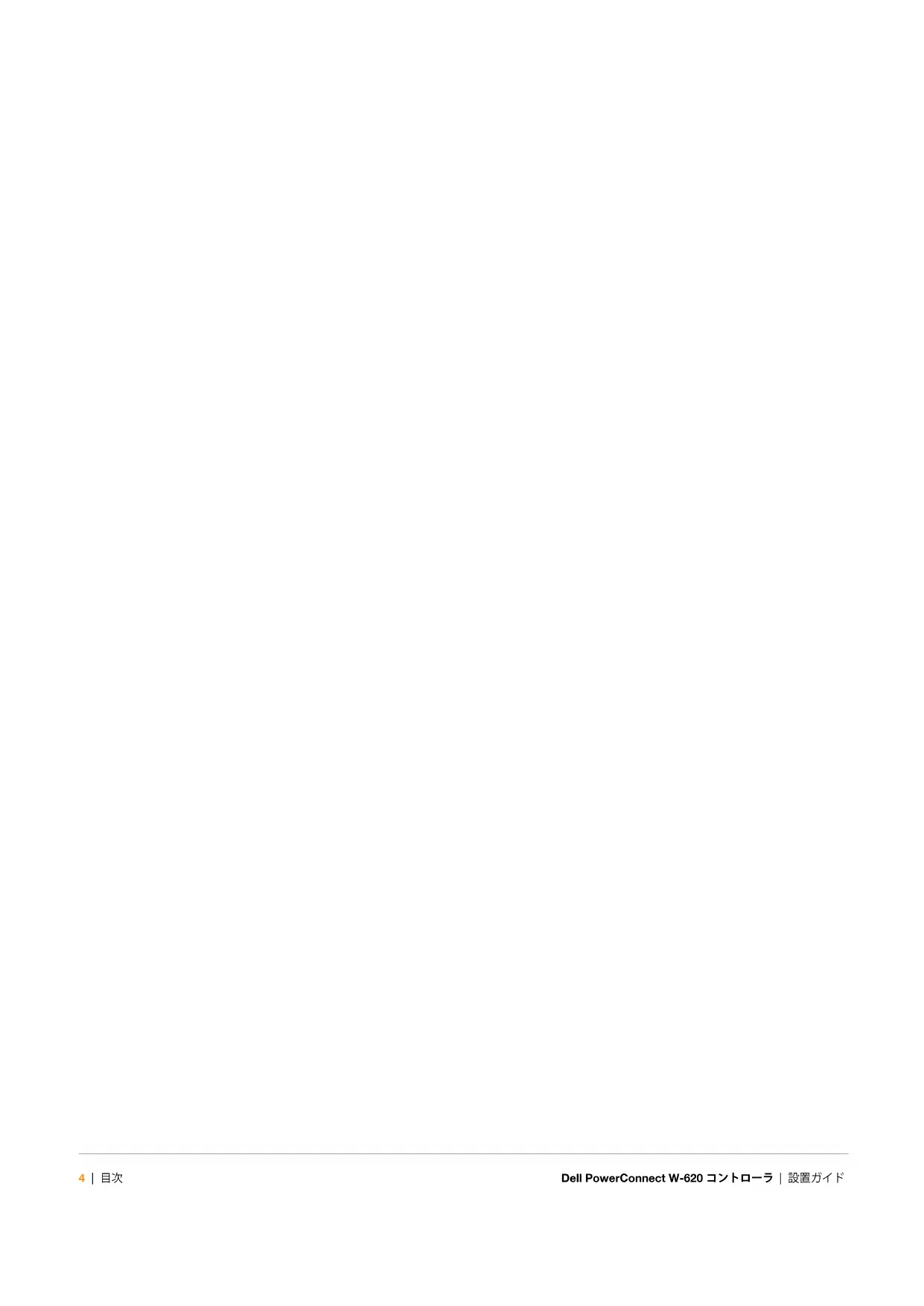 個人または企業による Aruba Networks, Inc. スイッチングプラットフォームおよびソフトウェアの使用によって生じるその他のベンダ の VPN クライアントデバイスが排除された場合、このアクションに対するその個人または企業の責任の完全な受諾を伴い、これらの ベンダの代理として著作権の侵害に関して Aruba Networks, Inc. に対して適用される可能性のあるすべての合法的なアクションを補償 するものとします。Dell PowerConnect W-620 コントローラ | 設置ガイド 目次 | 3